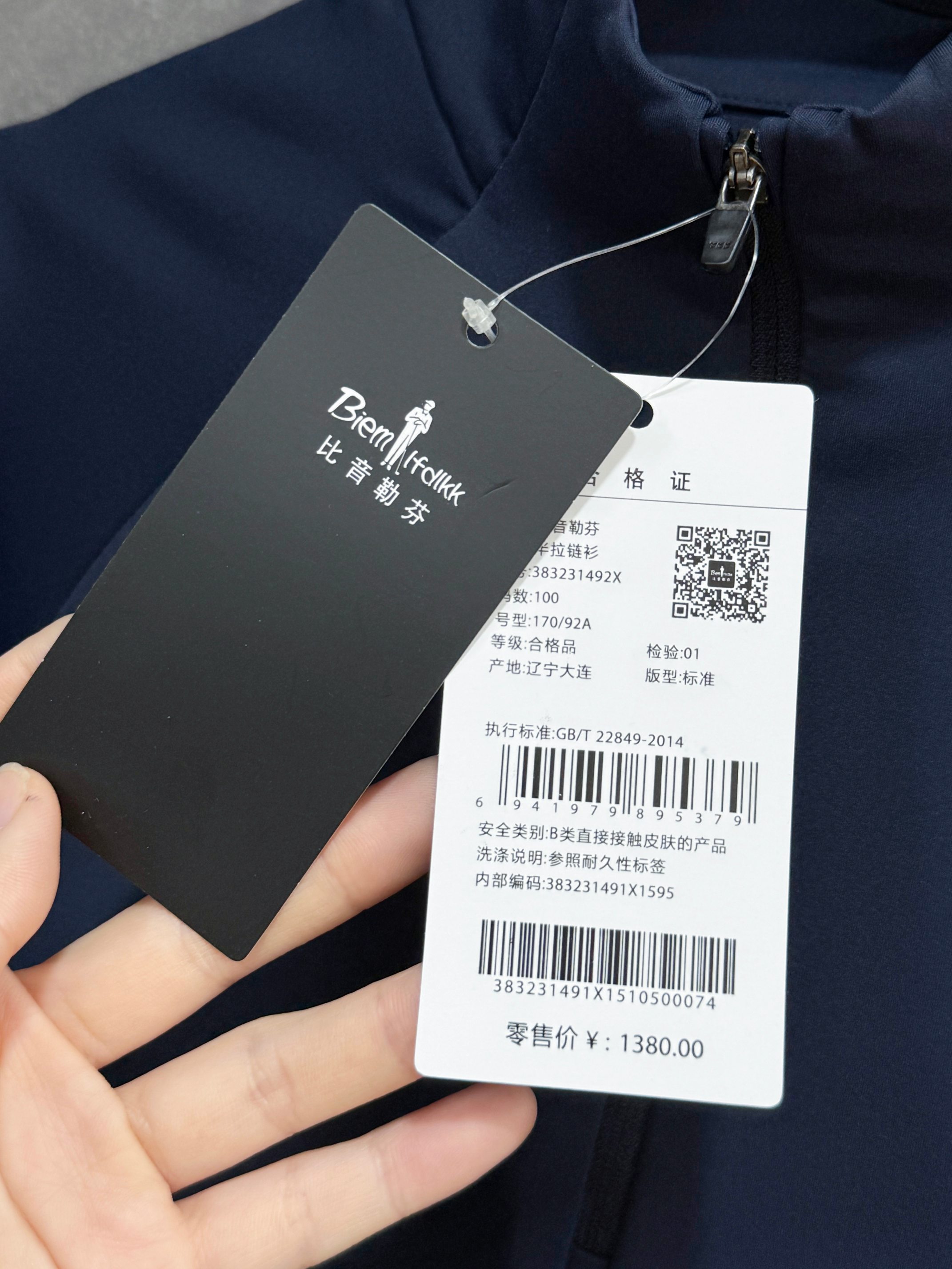 145 货号125733145 ss 比音勒芬男加绒款 半拉链 长袖