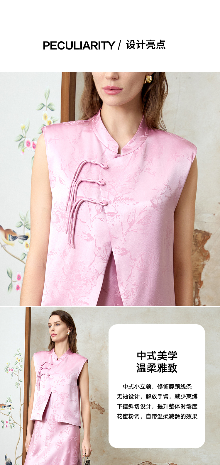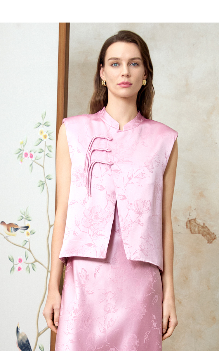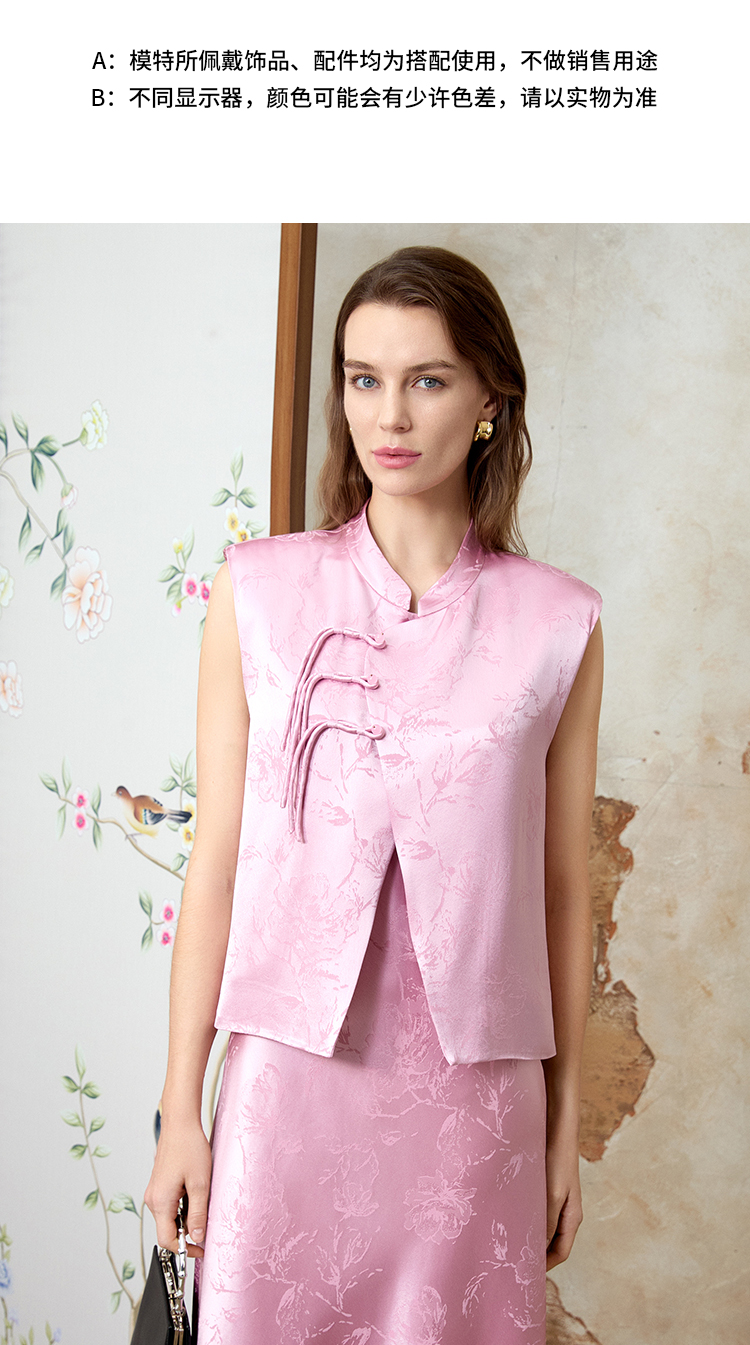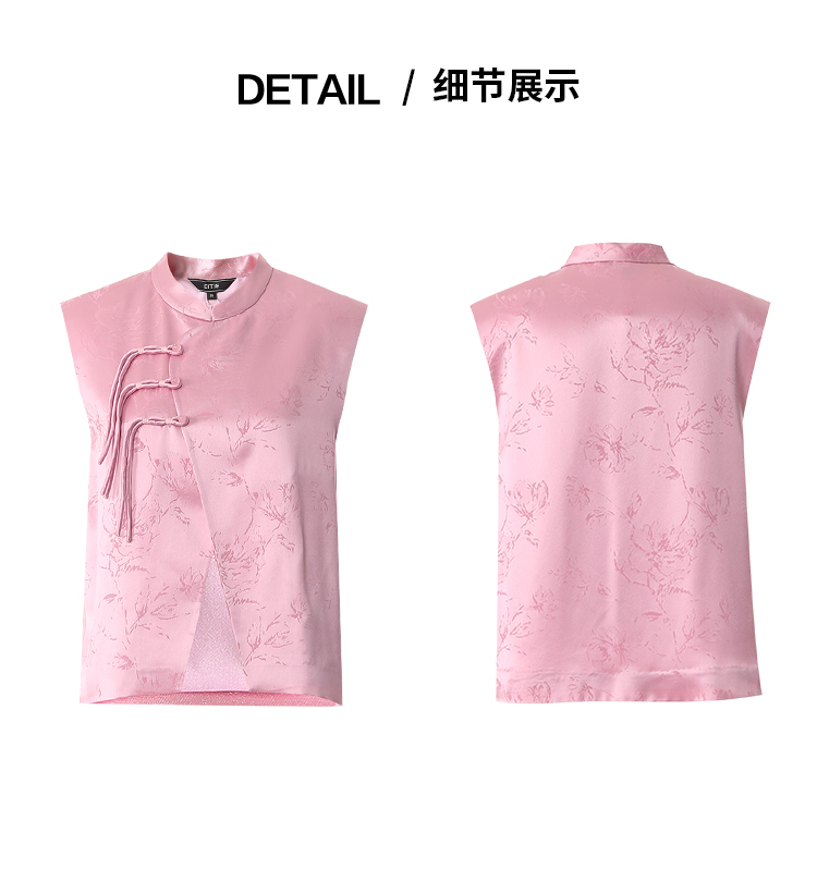 EITIE爱特爱中式盘扣气质立领直筒无袖马甲外套春季新款8103816