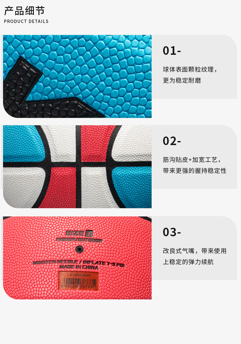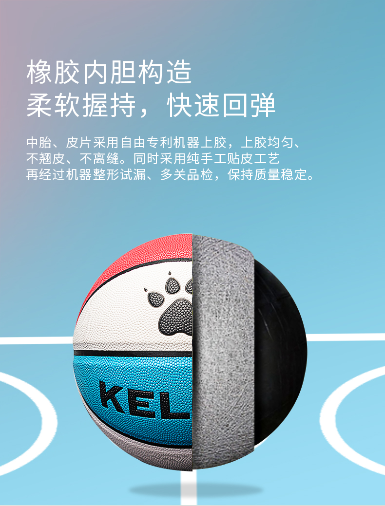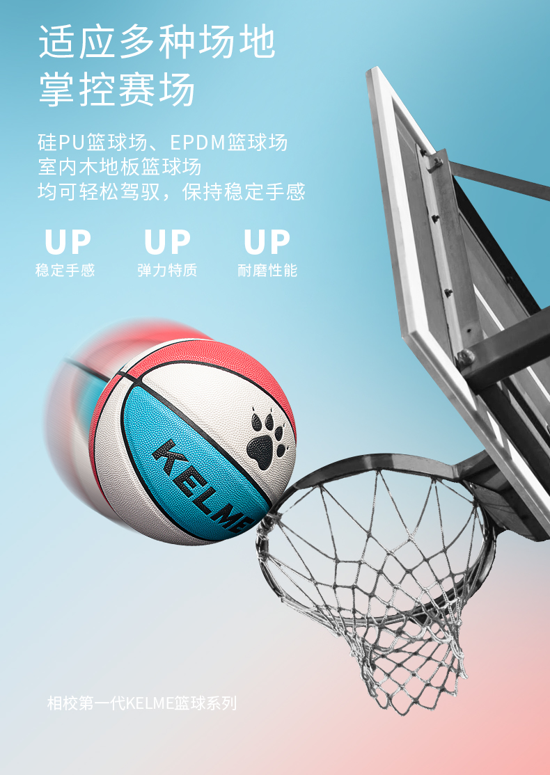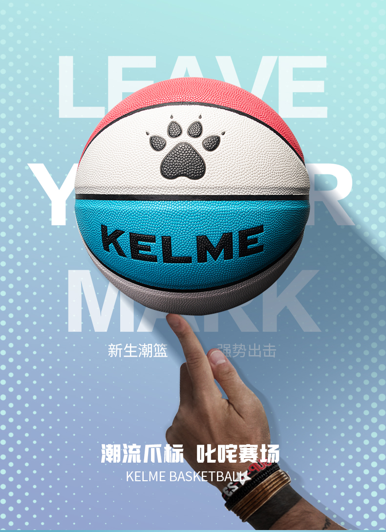 KELME卡尔美成人7号标准训练专用PU篮球室内外通用耐磨儿童5号球