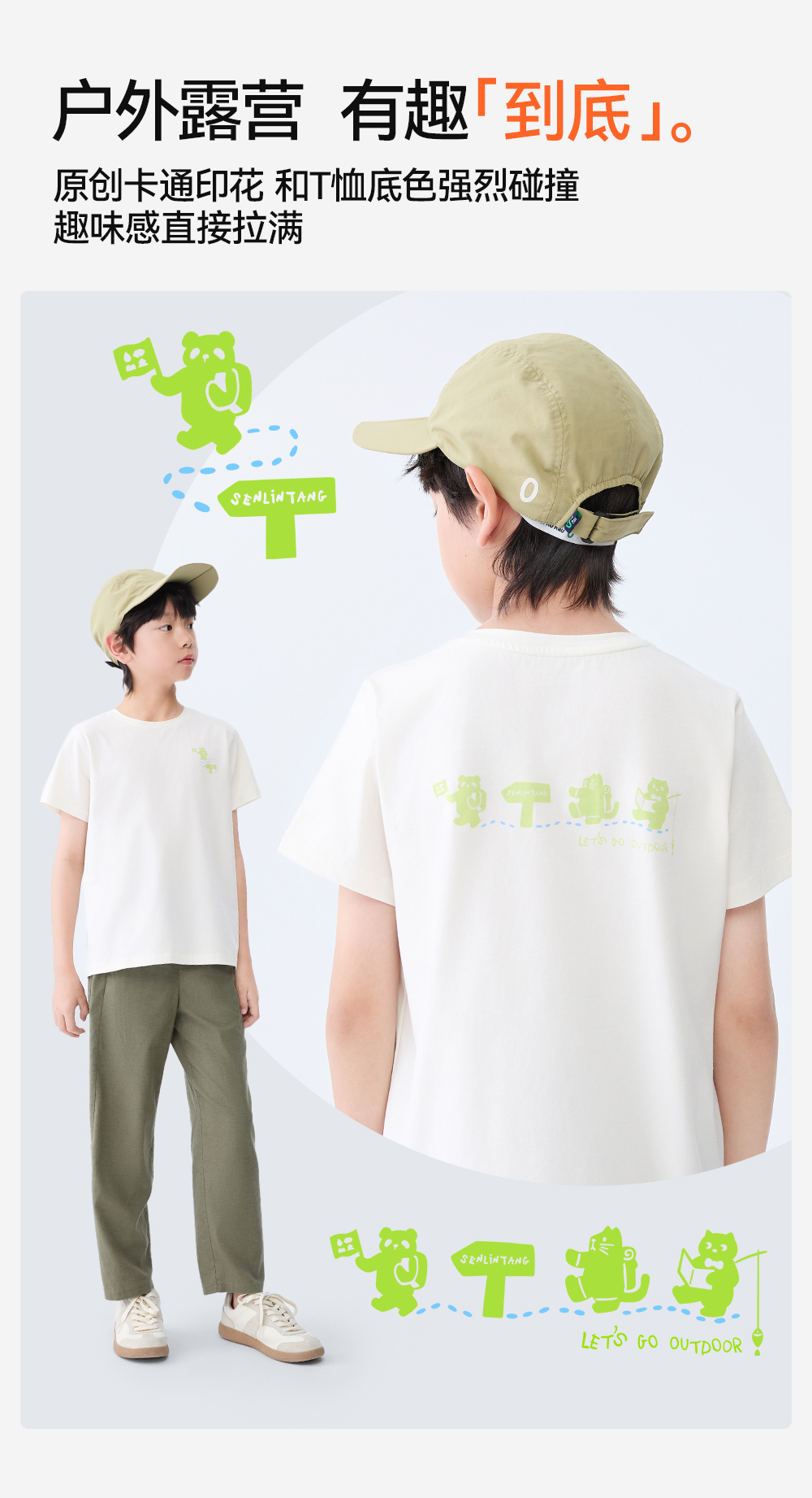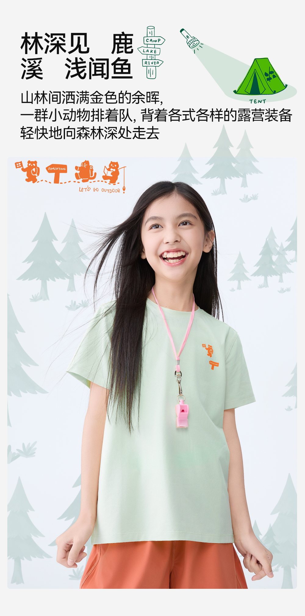 “大师”手绘户外露营插画T恤,小动物露营插画元素生动有趣
