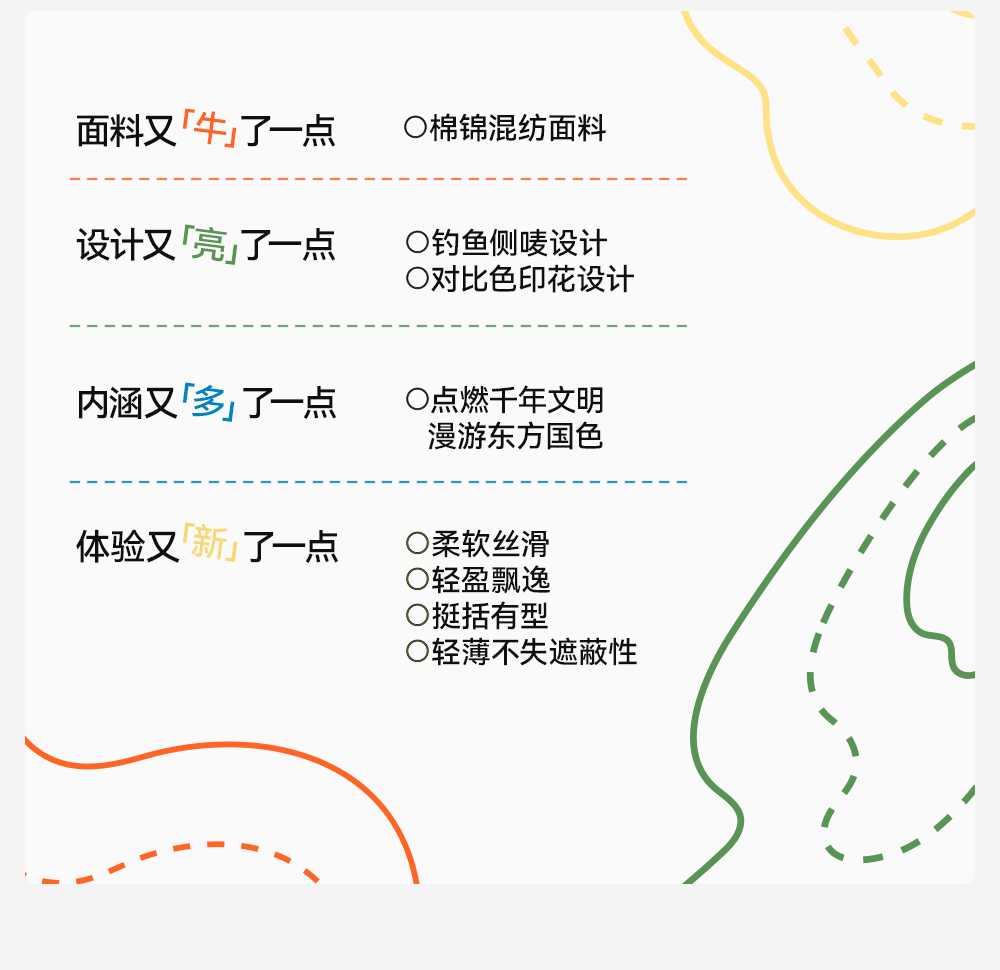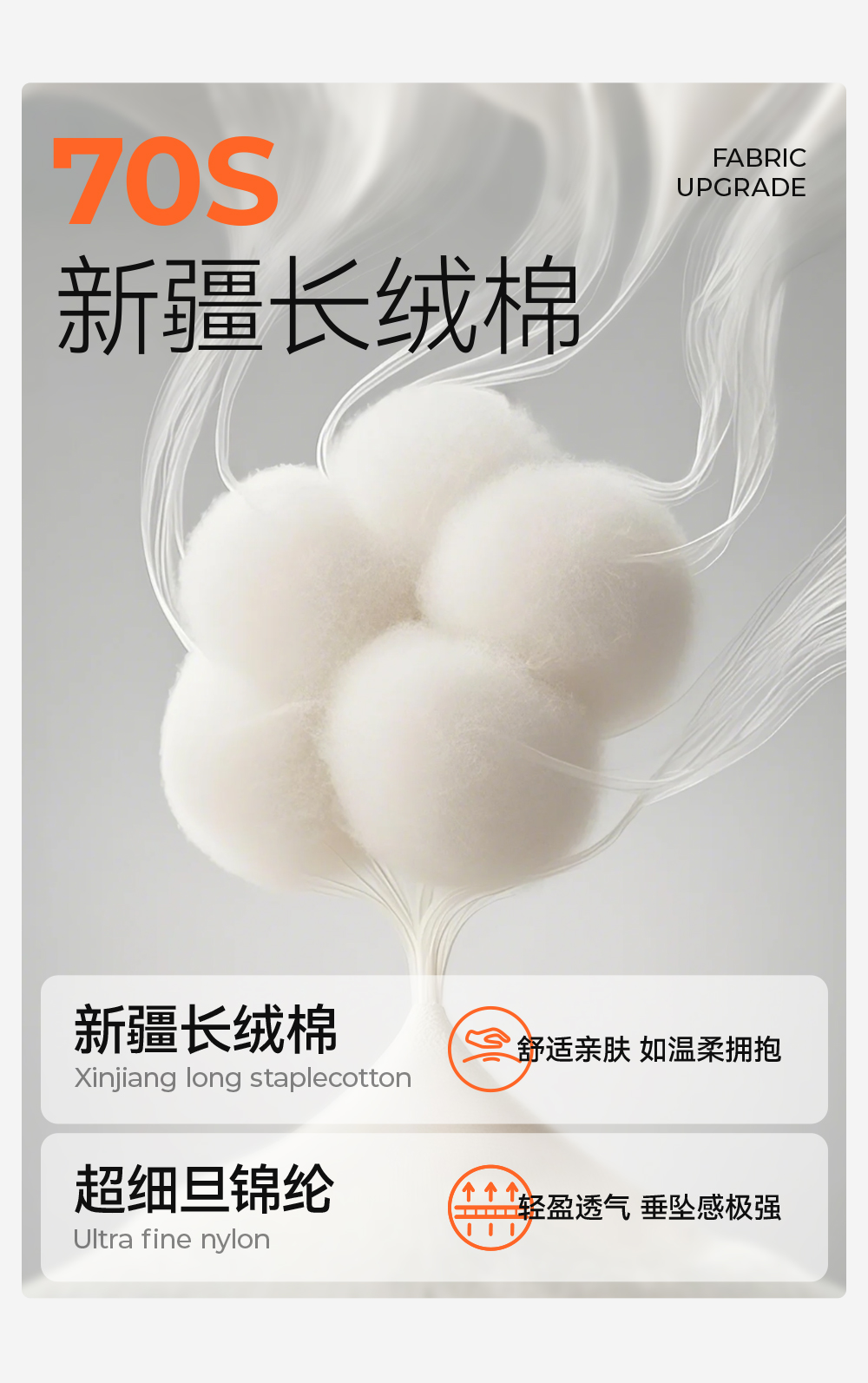 采用新升级蝉翼棉锦面料,高支新疆长绒棉负责柔软透气,锦纶负责保持T恤的挺括有型