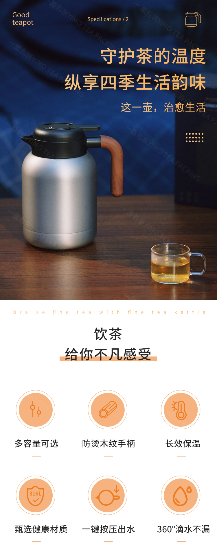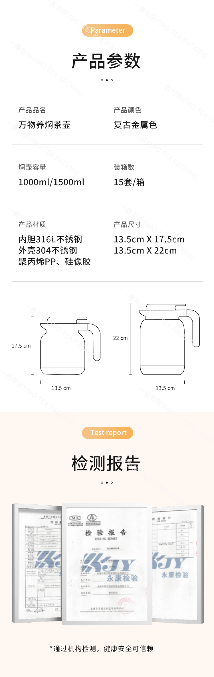 万物养焖茶壶复古金属色1000mlPA