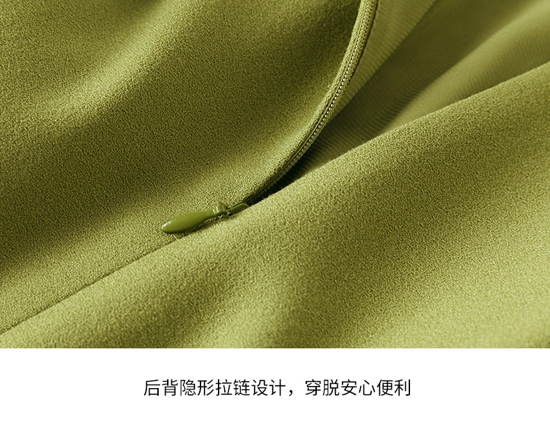 EITIE爱特爱女装初秋季新款薄纱透视五分袖百褶连衣裙长6007771