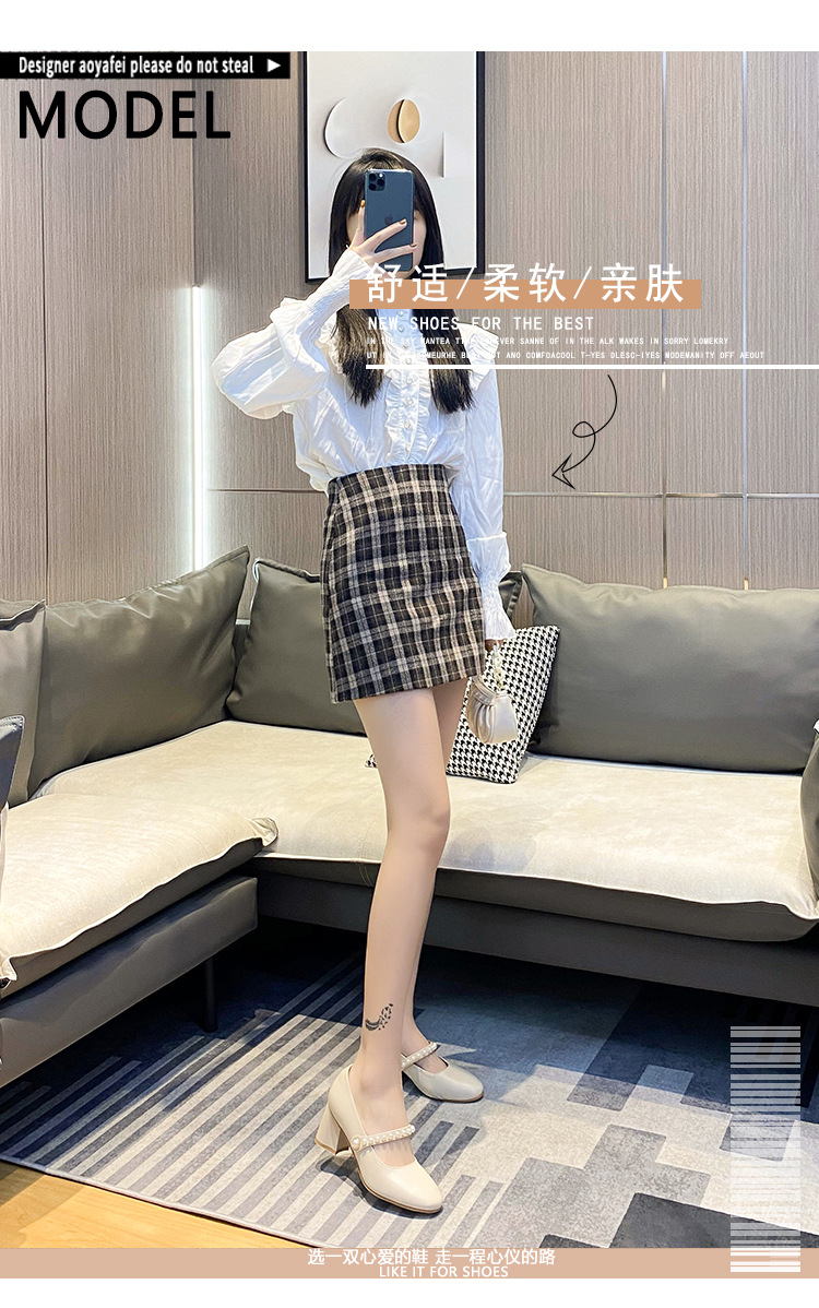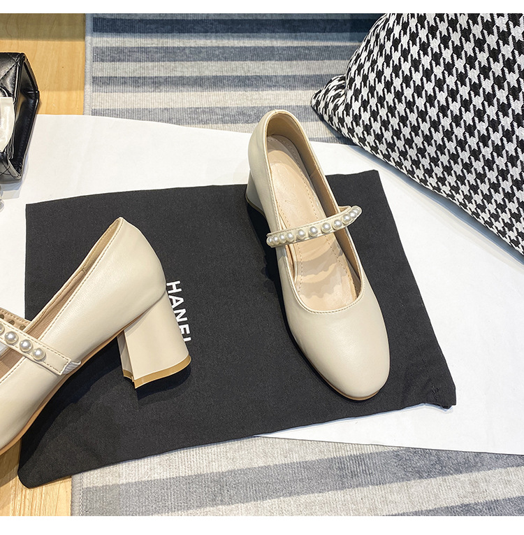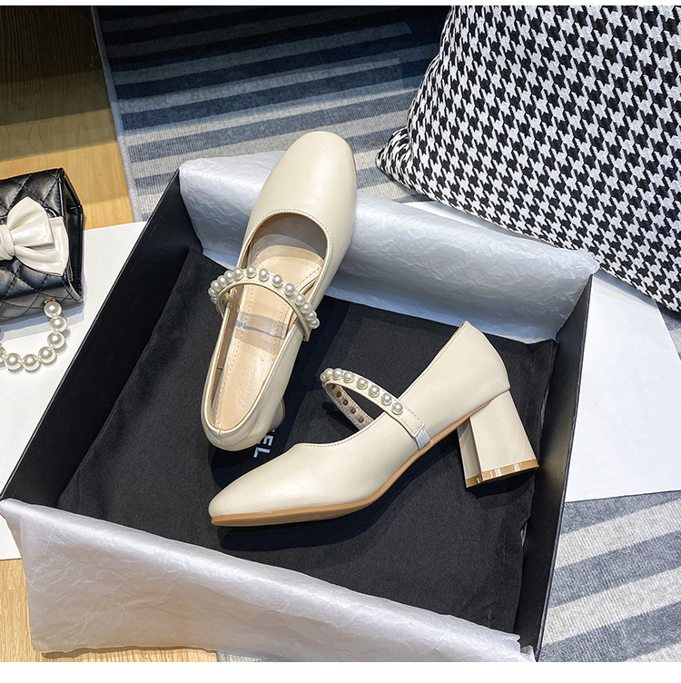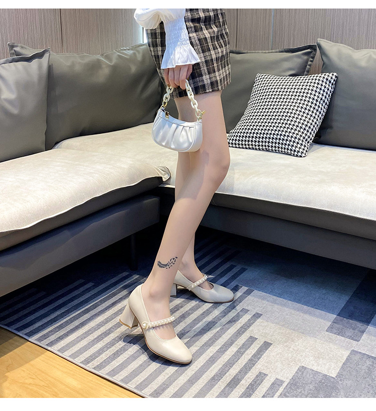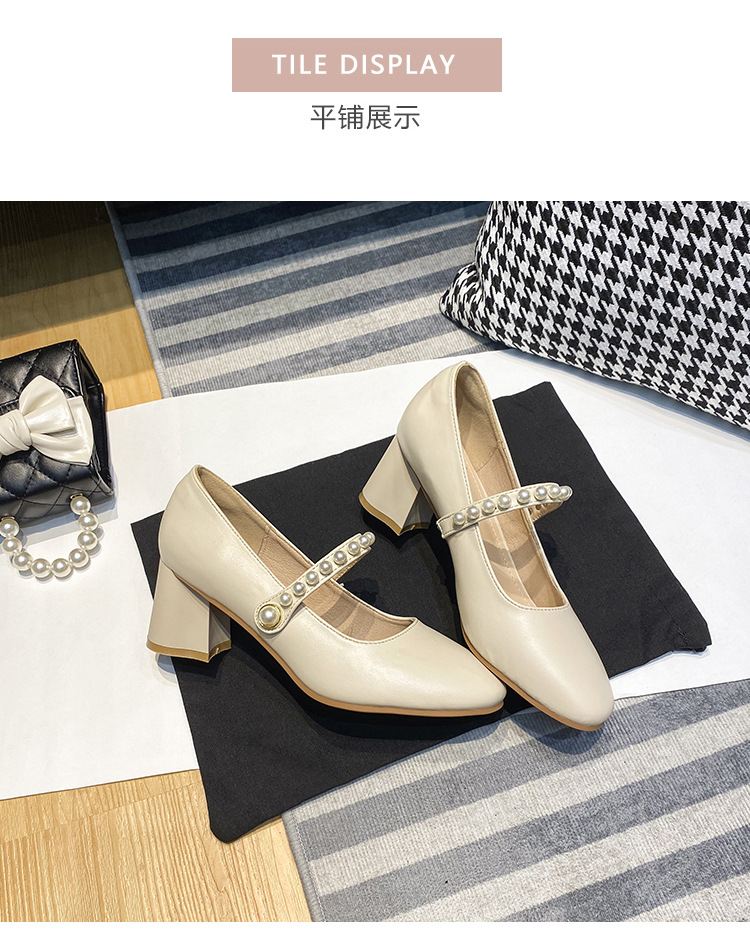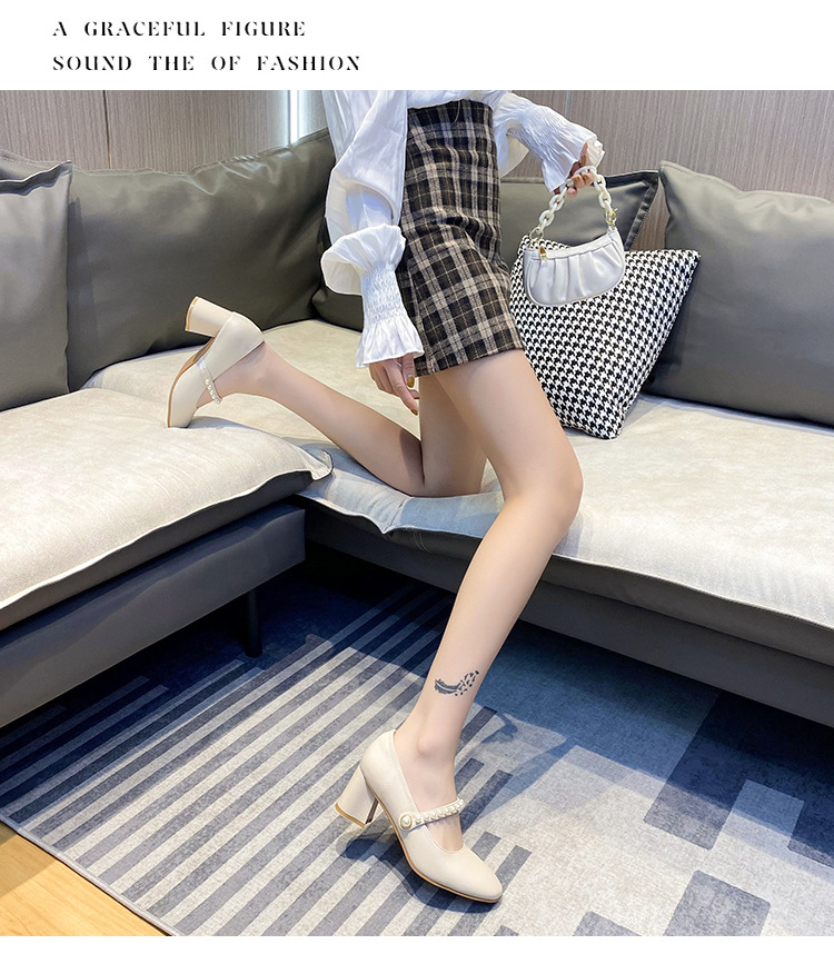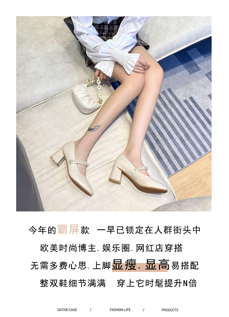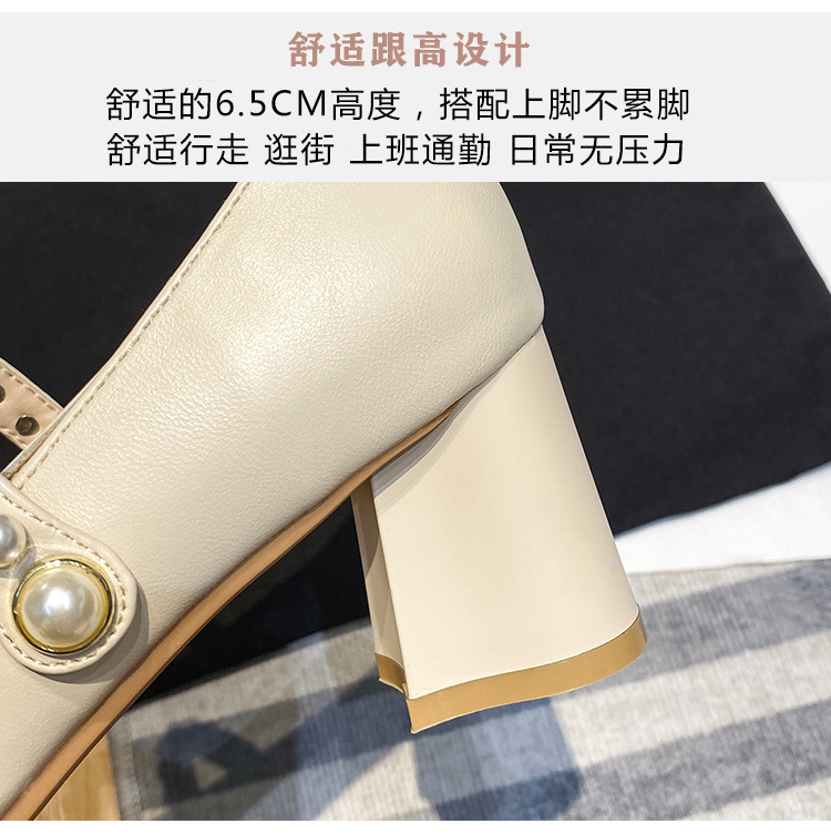 一字带高跟鞋玛丽珍鞋圆头粗跟单鞋DJY