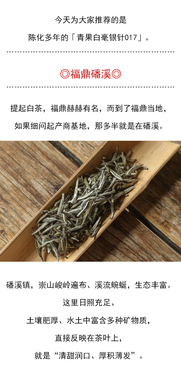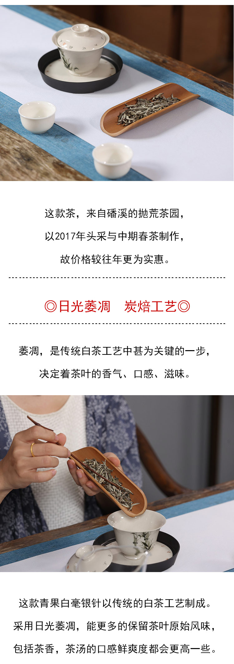 茶香记 青果白毫银针017 清甜润口 多年转化 日光萎凋 炭焙工艺 白茶