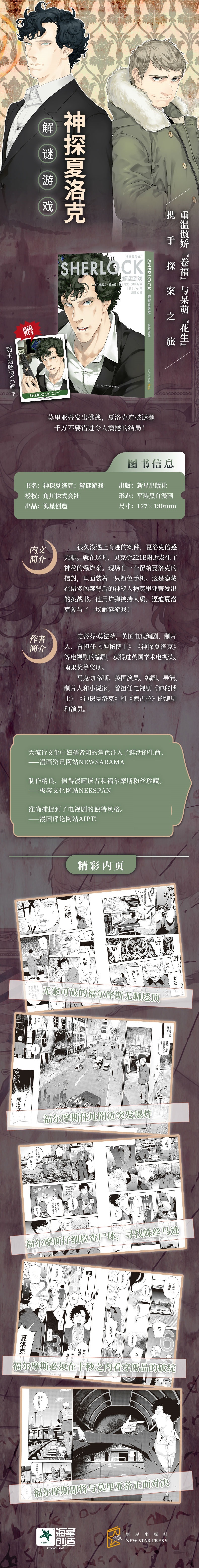 《神探夏洛克》2017年播完第4季后,迟迟没有更新,令全球粉丝捶胸顿足,望眼欲穿。此次引进出版的官方漫画,不仅可以带你重温当年剧集带来的心动,还可以让你从全新的角度欣赏“卷福”成名作的风采。全书收纳于精美环套之中,还附赠“卷福”PVC画卡(单册)和海报(套装),是广大日漫爱好者、侦探小说读者、“卷福”粉丝不容错过的收藏品。