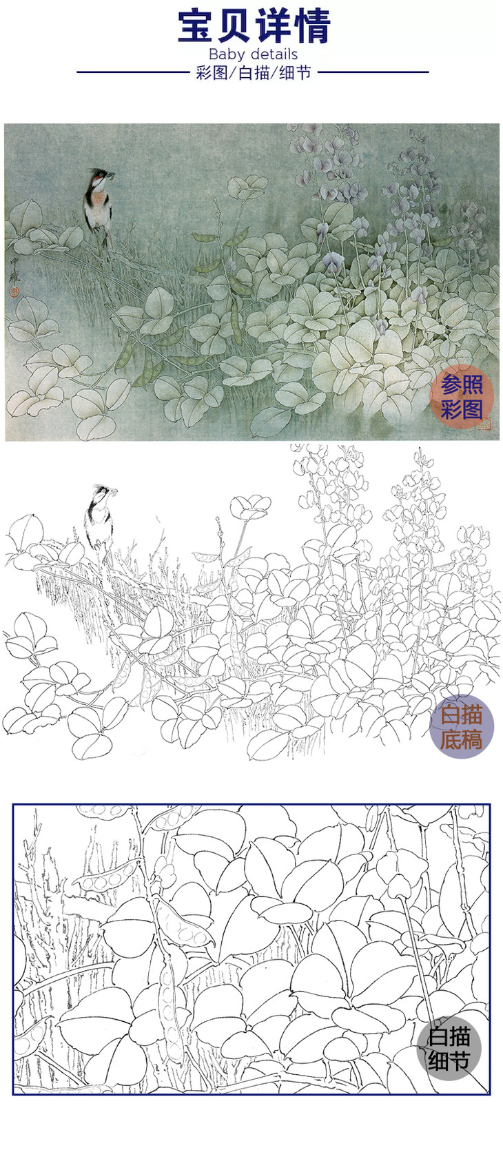 横幅工笔花鸟白描底稿-周中耀《田家小景》-多种白描尺寸可选-ZT31