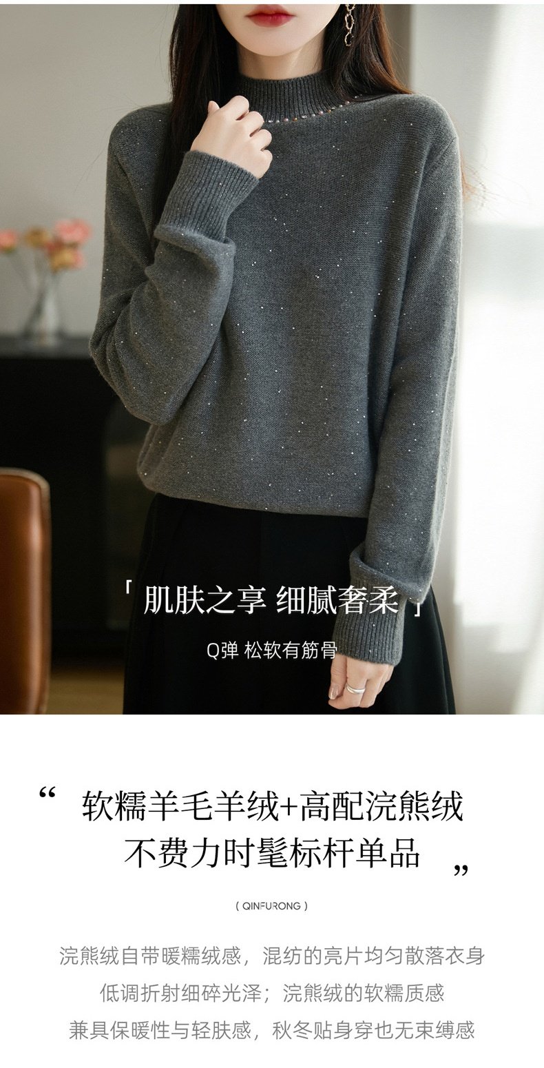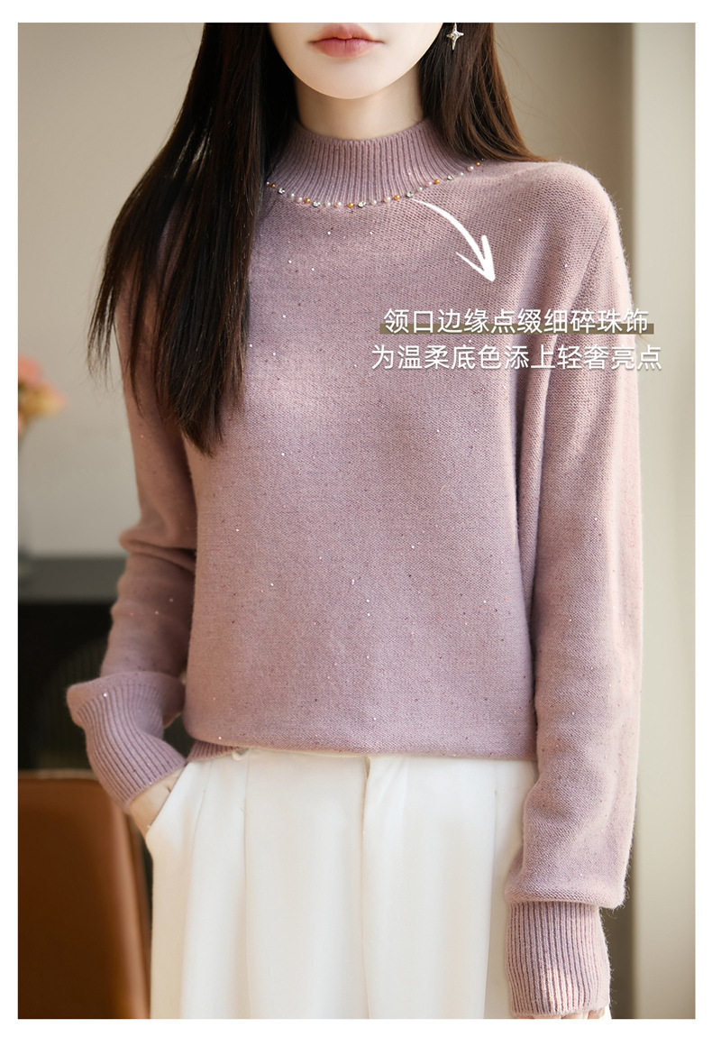 「自」全新升级【铂金会员146/天猫189/差价43】(20026)洛诗琳钉珠半高领针织衫2025冬季新款时尚亮片宽松针织毛衣