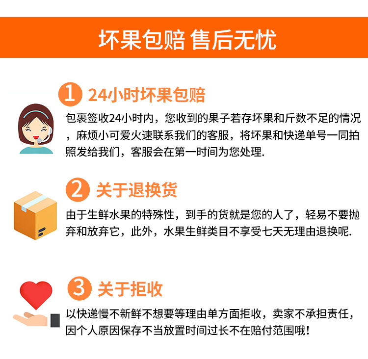 4.签收12小时内拍照:坏果和快递单一起的照片,须清晰的看见单号,坏果问题,如未能提供一律不予赔付。