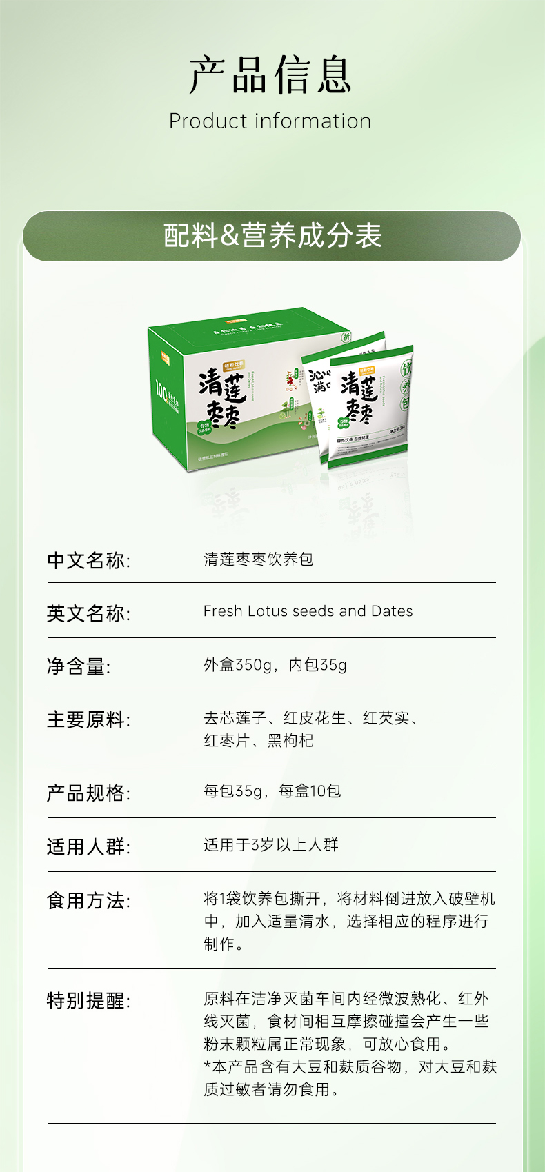 清莲枣枣:祈和饮养破壁机原料包去芯莲子红枣片营养早餐五谷杂粮组合料理包350g(10小包)