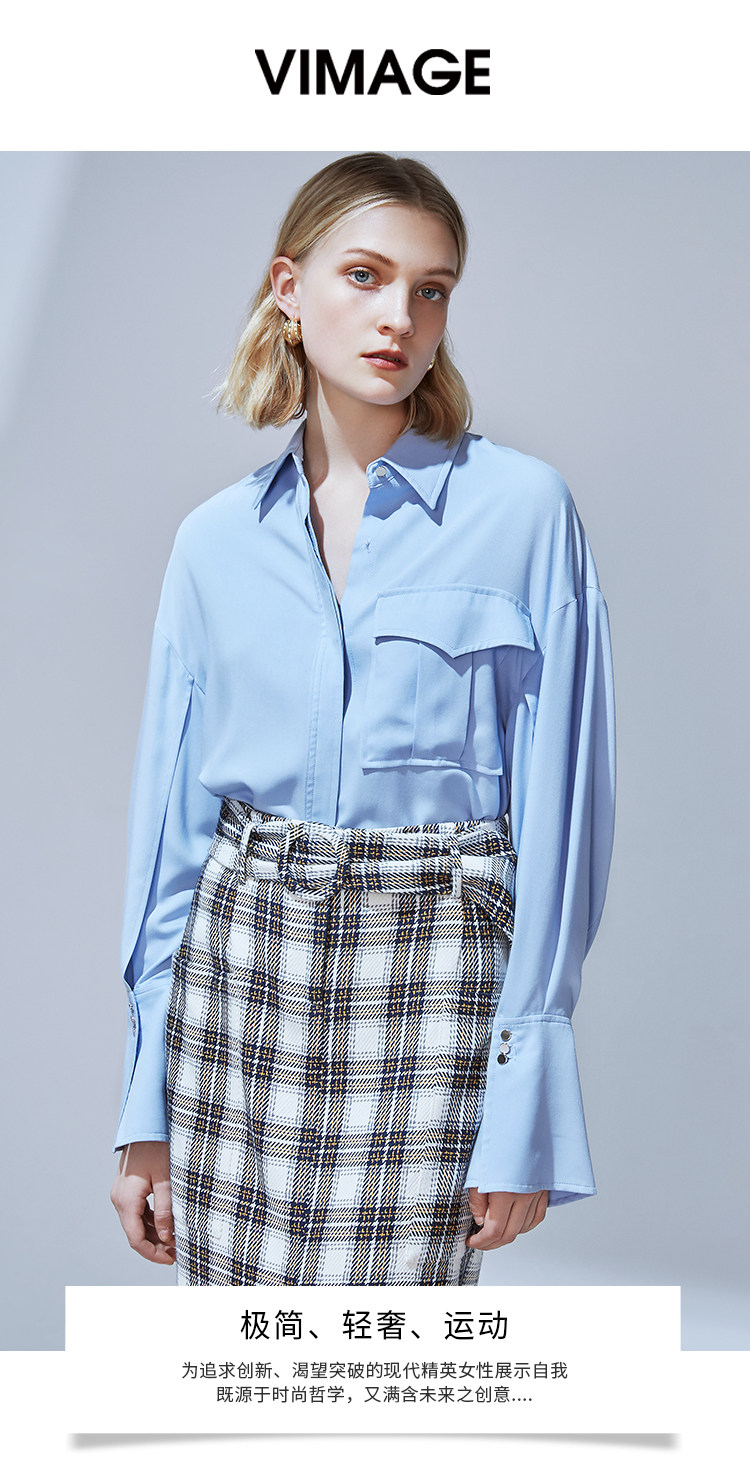 VIMAGE纬漫纪秋季新款气质通勤简约时尚显瘦百搭衬衫女上衣V1409002