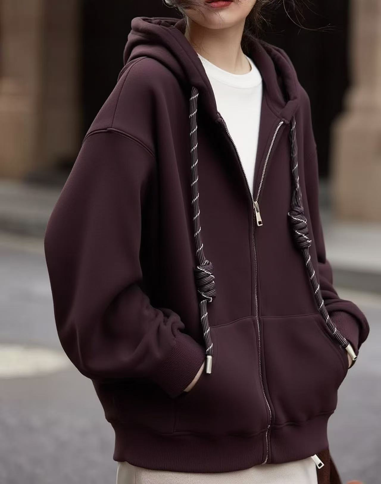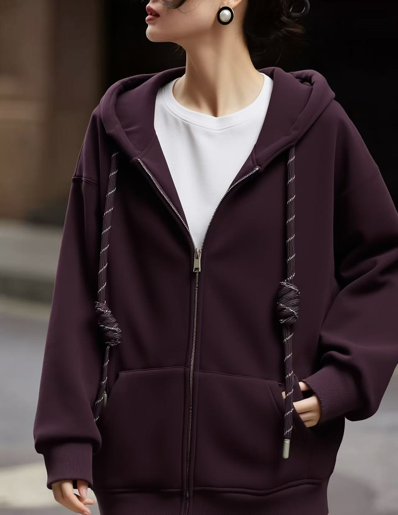 🔥🔥加绒厚款【内里颗粒绒】宽松大版(彩绳)连帽休闲卫衣拉链外套-喜出