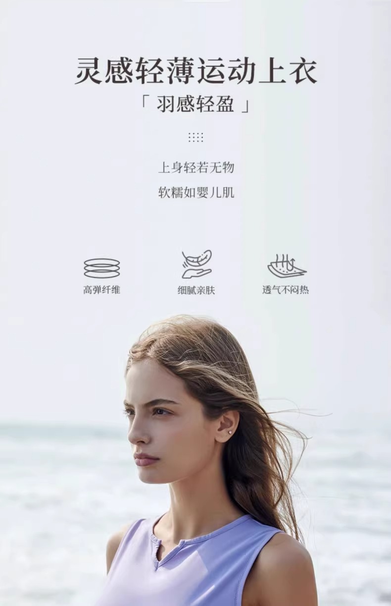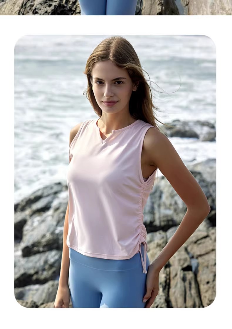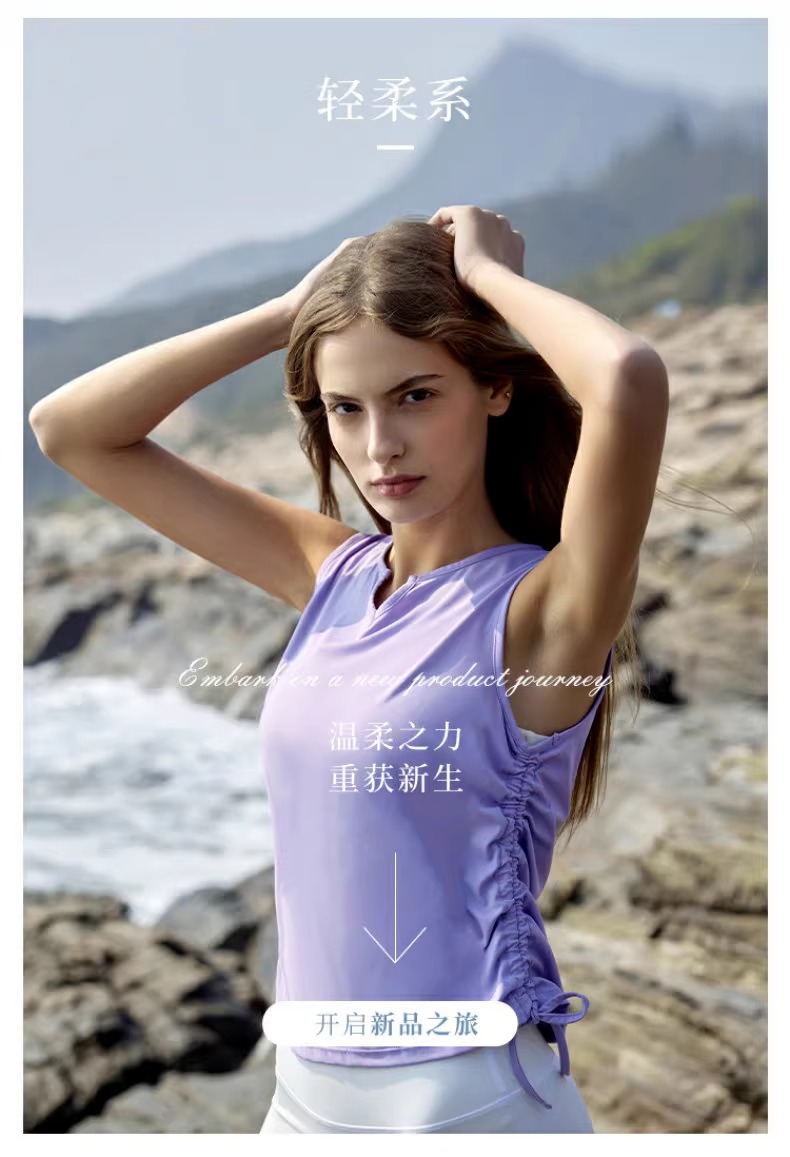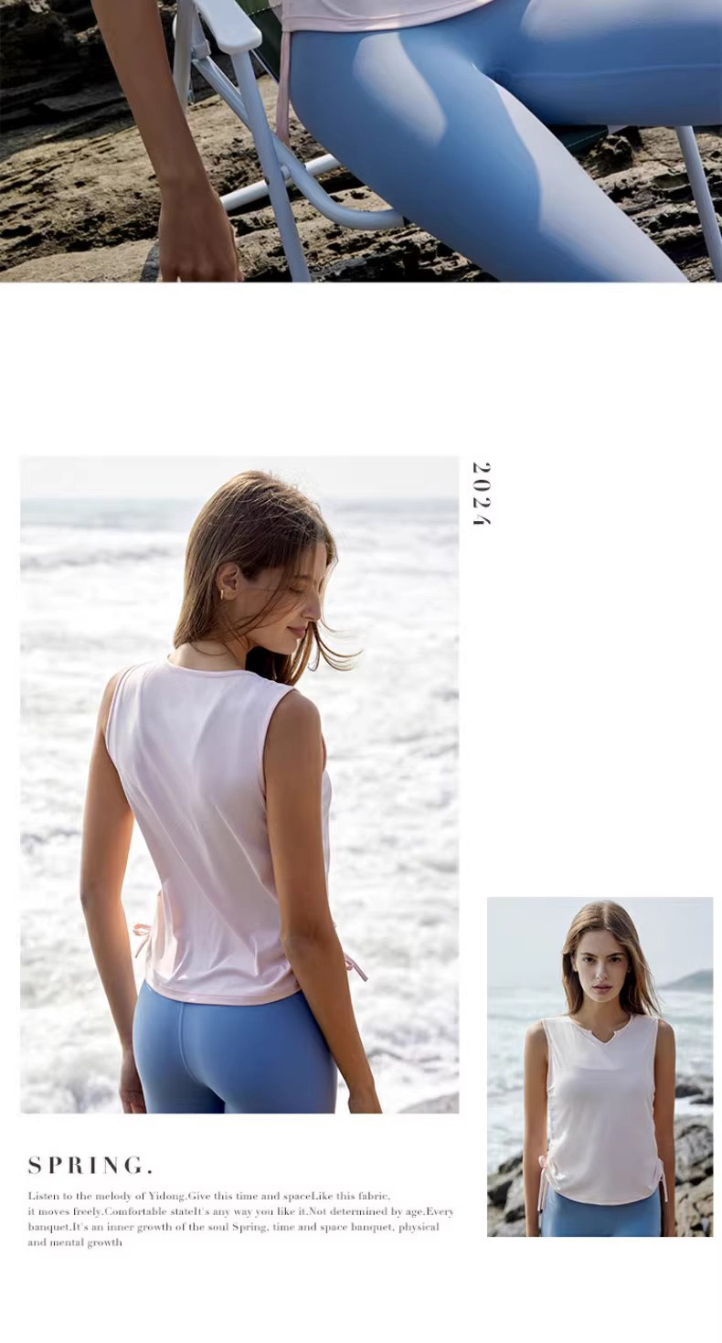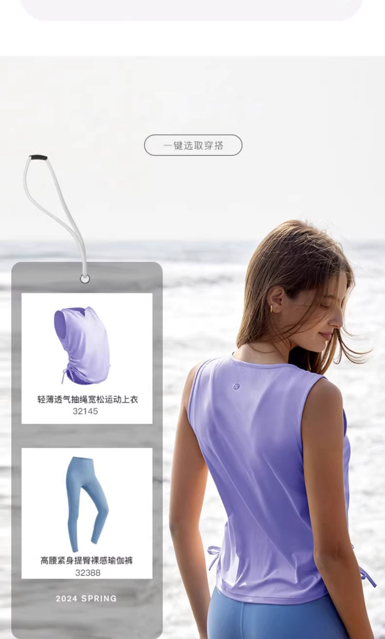 跃牌【欲动春风】系列 30D细纱女夏轻薄透气瑜伽背心弹力抽绳宽松上衣裸感健身运动罩衫32145