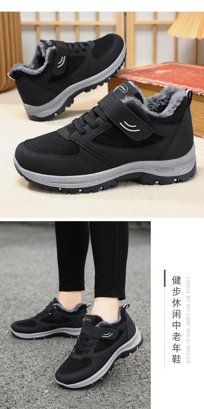 雀说情侣款健步保暖棉靴厂家直销休闲加绒加中老年厚雪地靴ALGM-D-6