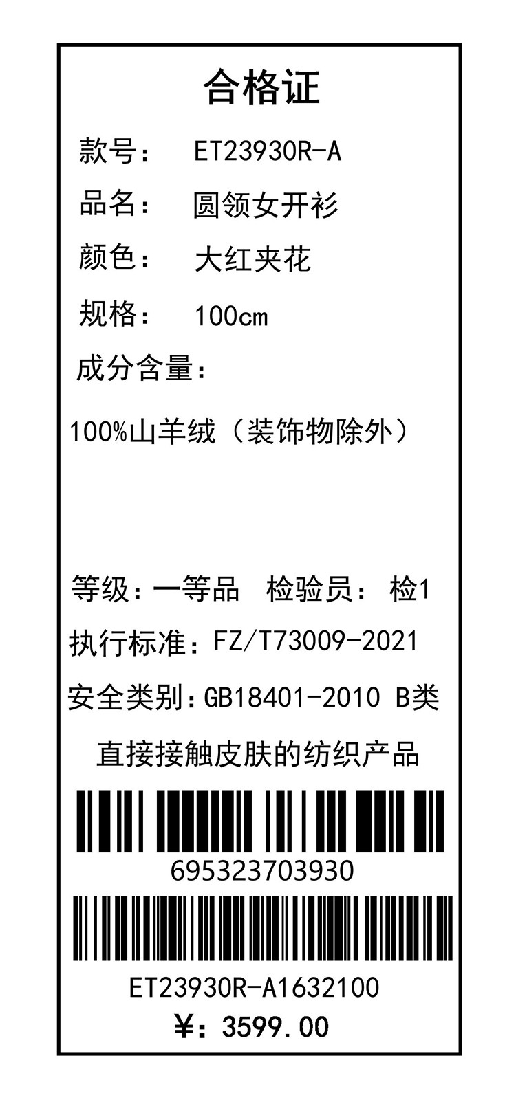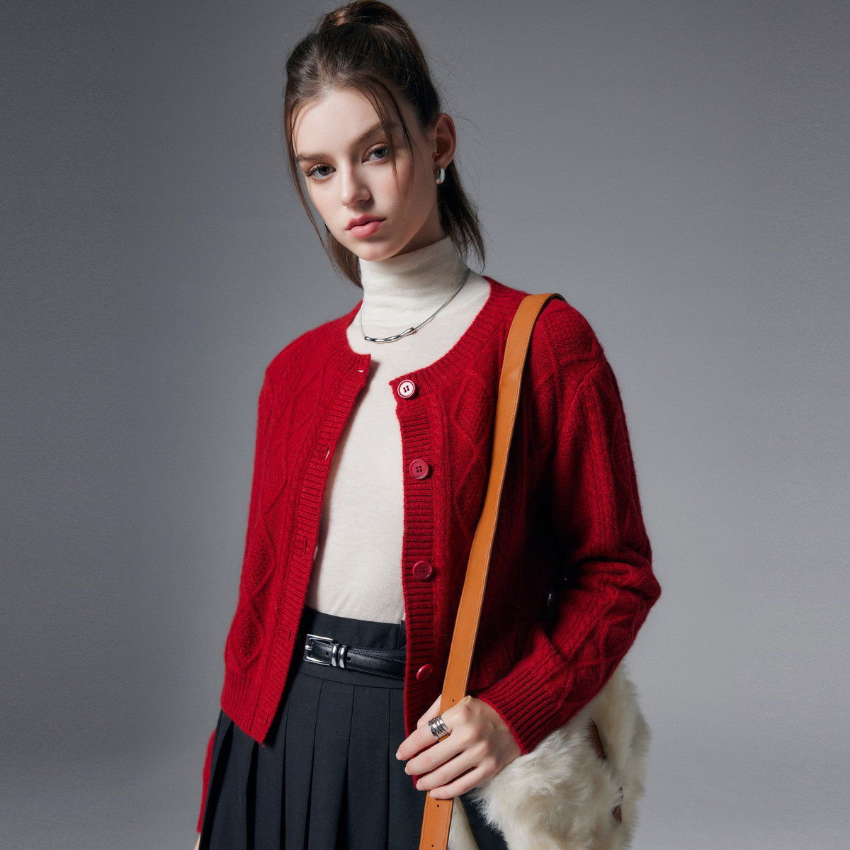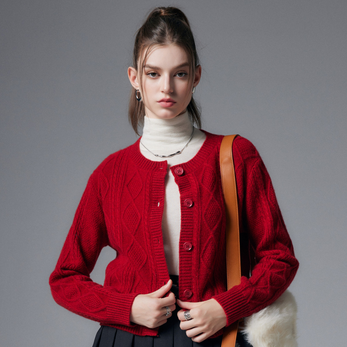 【咕咕同款】PALUOPO/PL圆领女开衫ET23930R-A/约重280g 红色帕罗