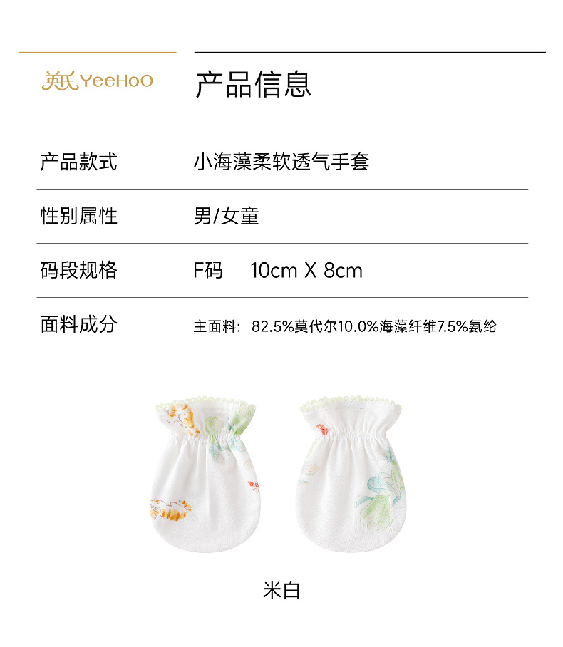 【商场同款】英氏婴幼儿手套10A抗菌宝宝手套防抓咬婴儿手套新款
