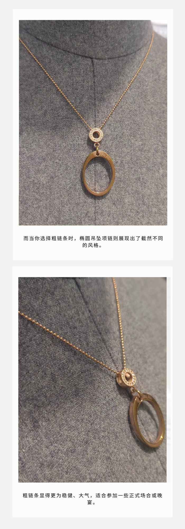 Folli Follie · 椭圆项链•不锈钢材质•粗/细链条•截然不同的风格