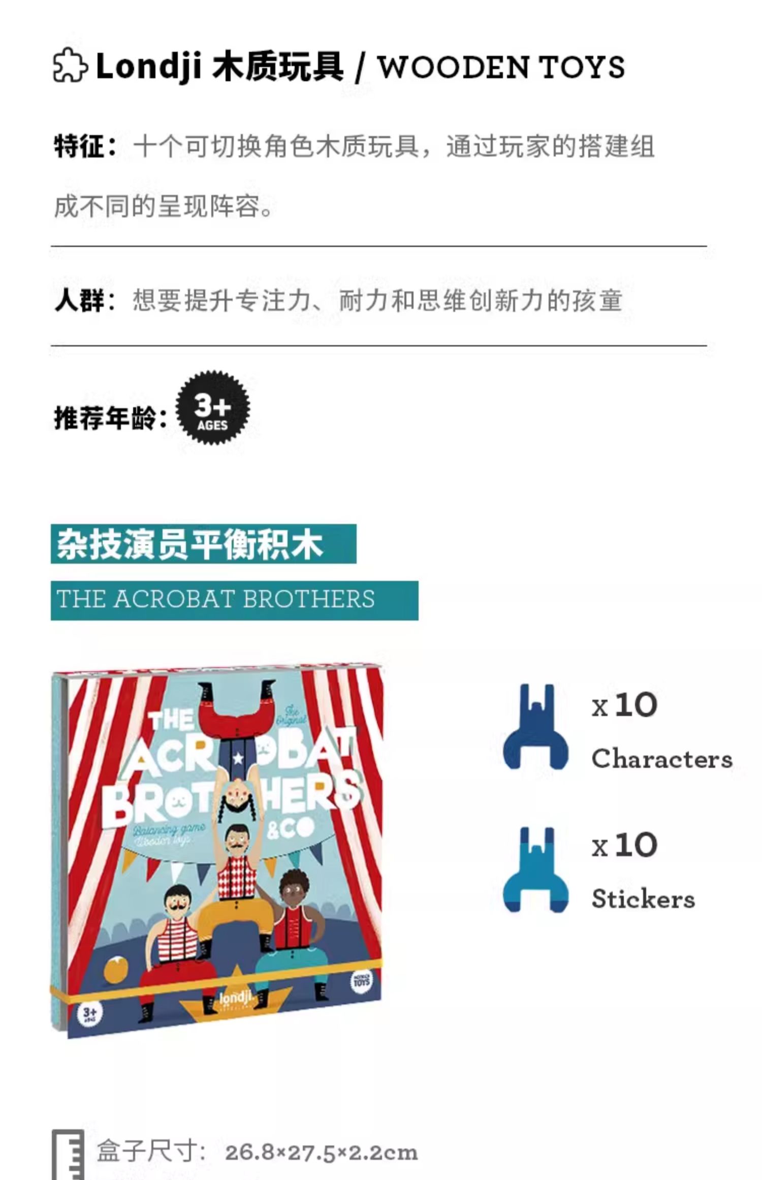londji儿童进口木质玩具杂技演员 平衡游戏