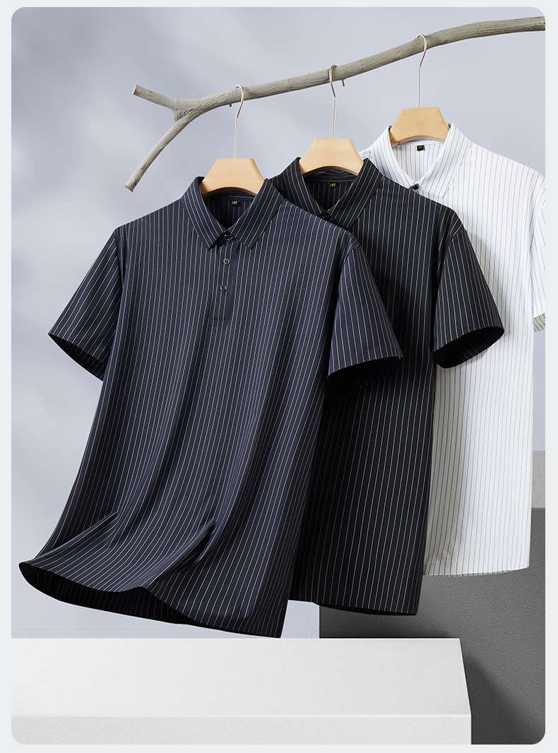 【Q】【特大码】【冰丝高弹】【新款DM】大依优型大码竖条纹短袖Polo衫加肥加大男装免烫大号大码上衣男士绅士商务休闲半袖夏季