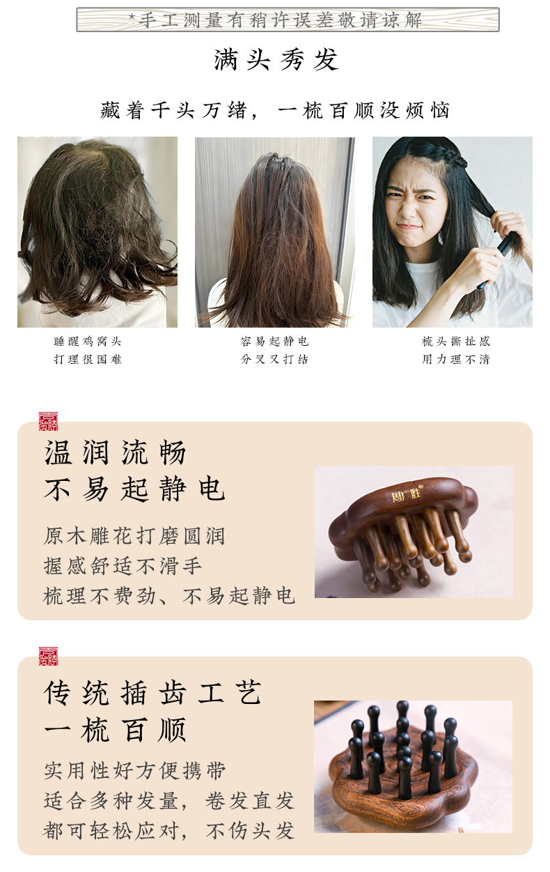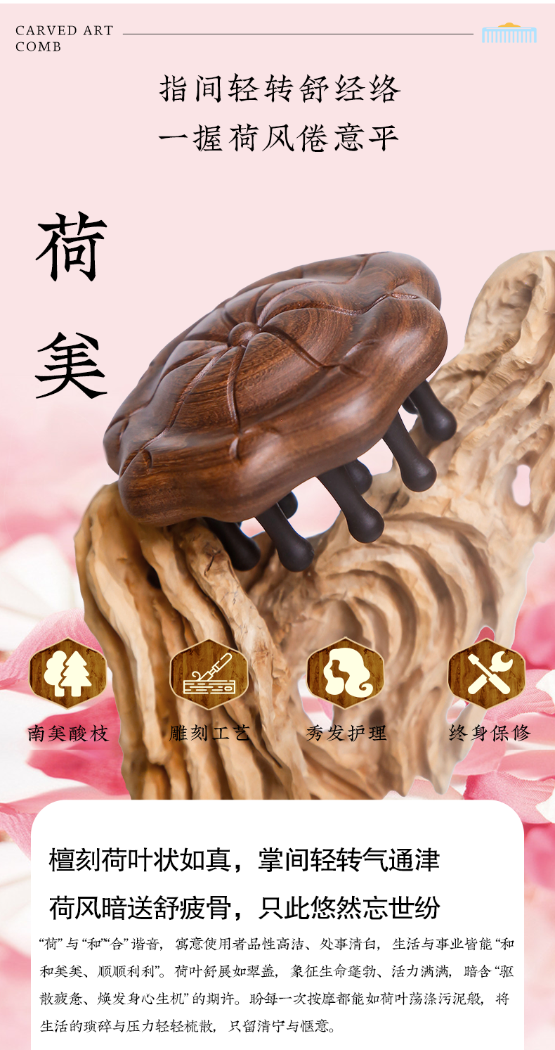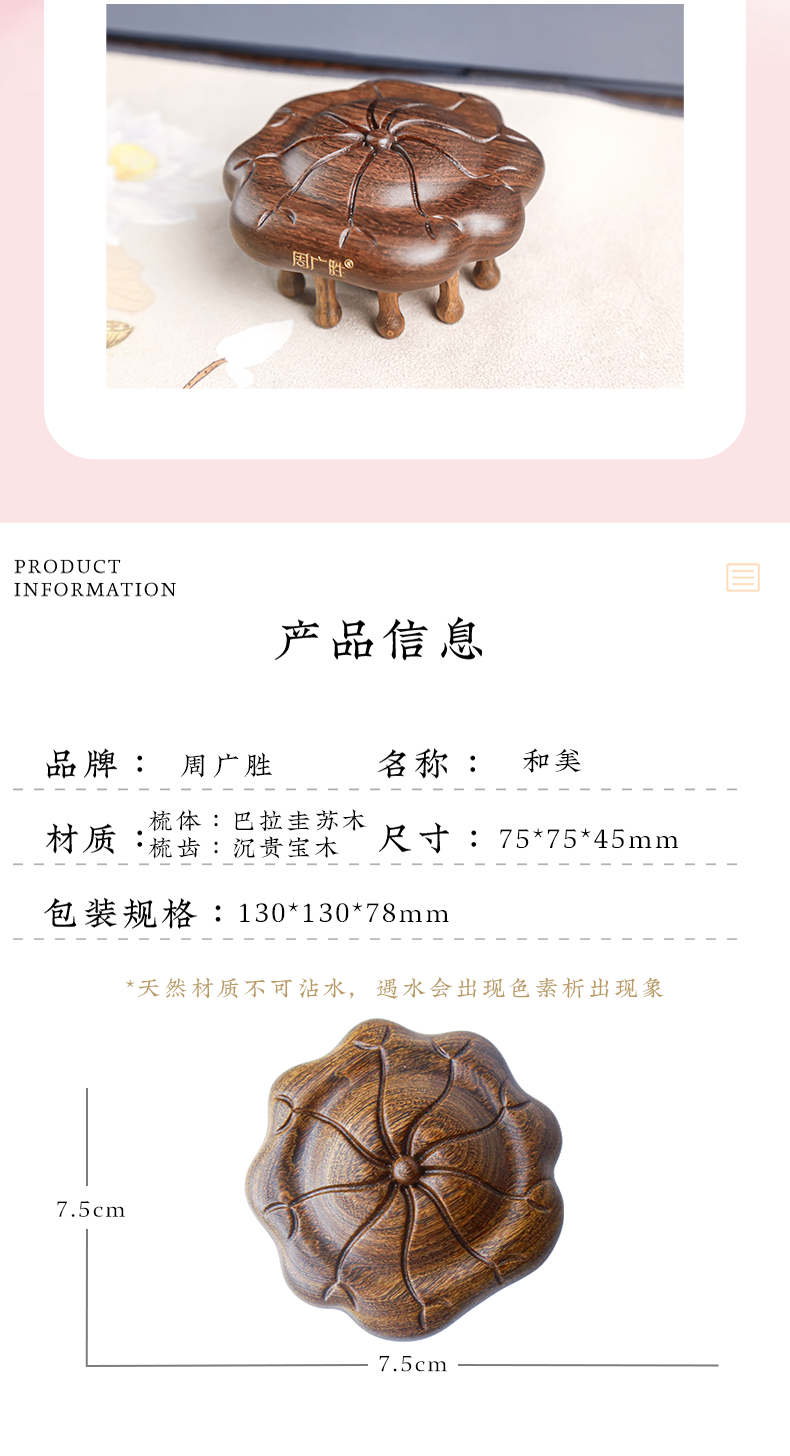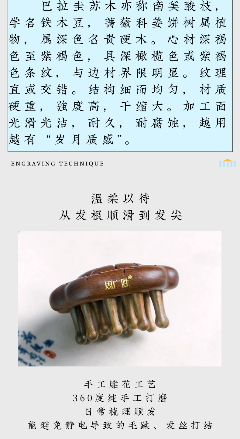 周广胜天然沉贵宝木合木按摩木梳子女士长发便携顺发护发蓬发梳