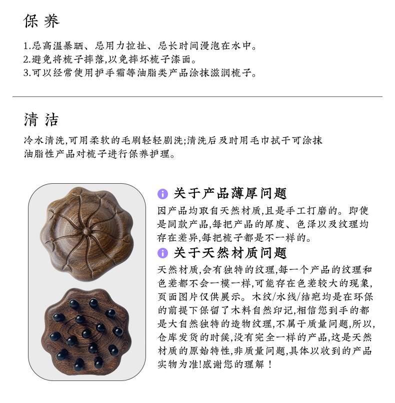 周广胜天然沉贵宝木合木宽齿按摩木梳子长发便携可定制顺发护发蓬发梳