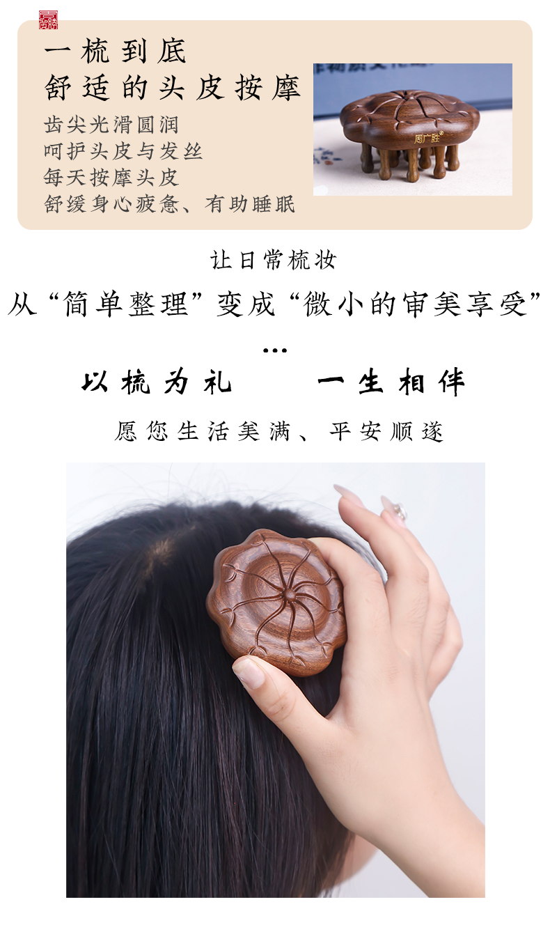 周广胜天然木材雕花合木梳雅纹男士女士家用护发顺发按摩梳礼盒
