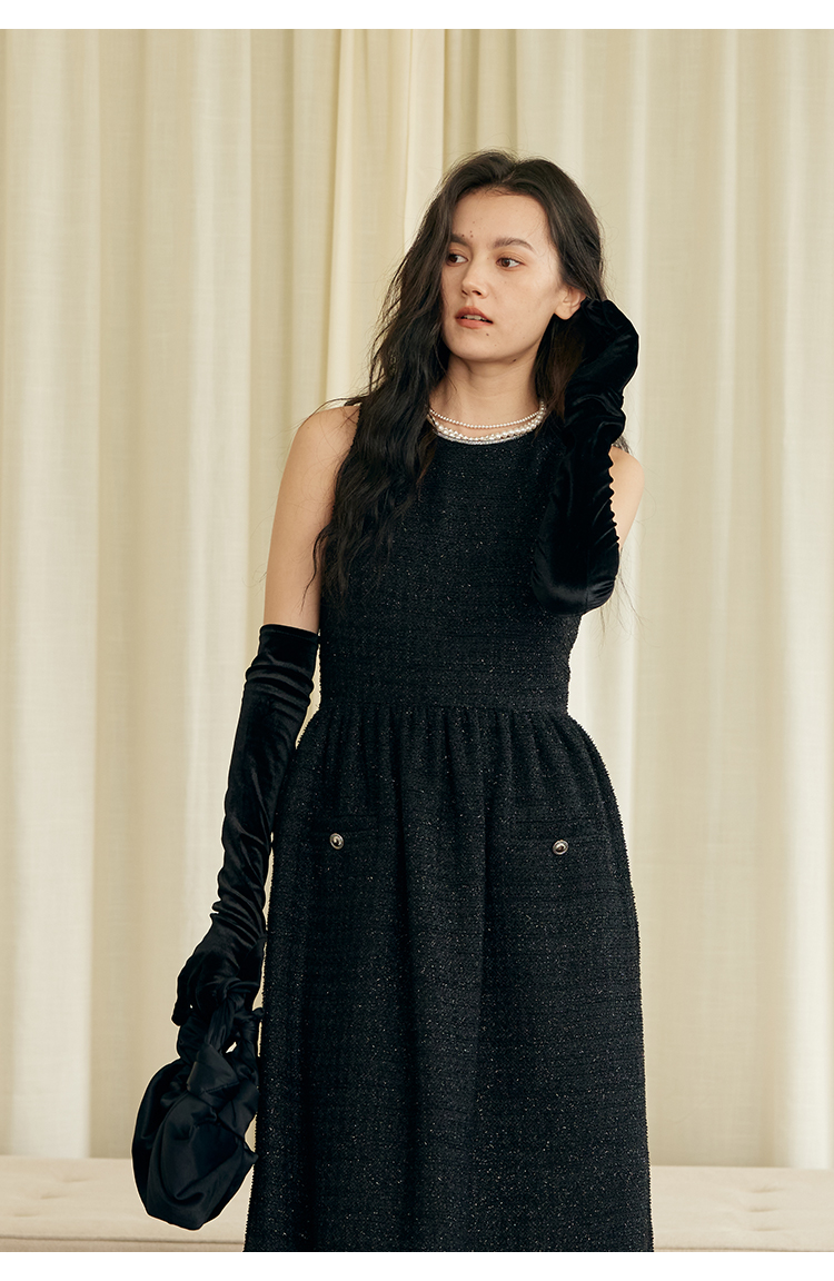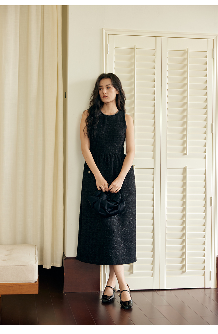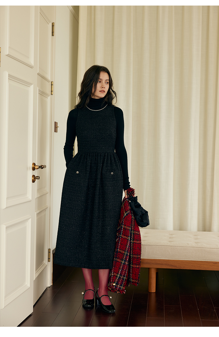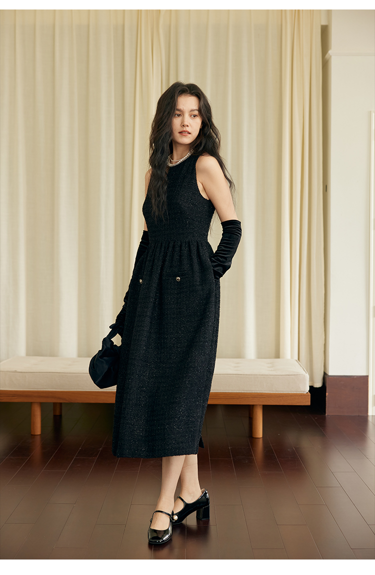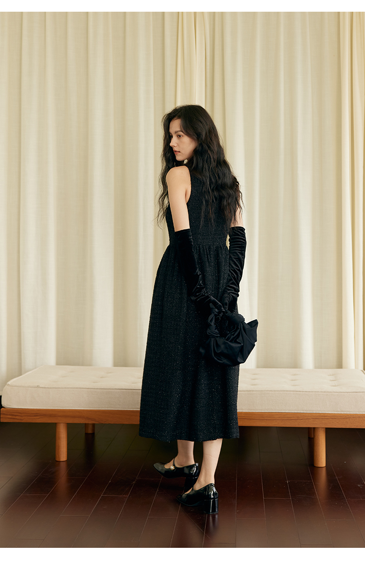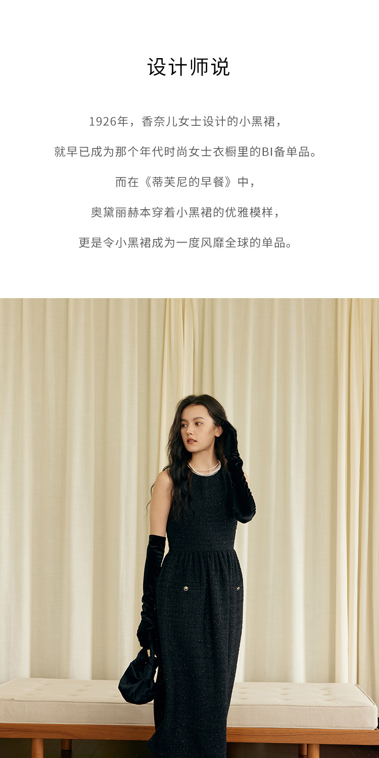 HeyDress法式连衣裙女秋冬收腰显瘦气质赫本风高级小黑裙花苞裙子