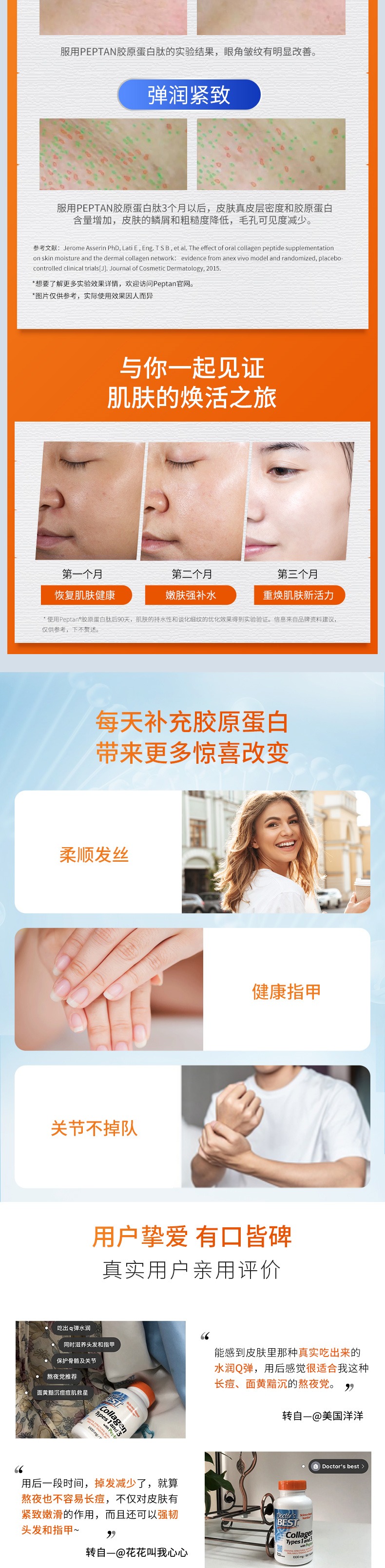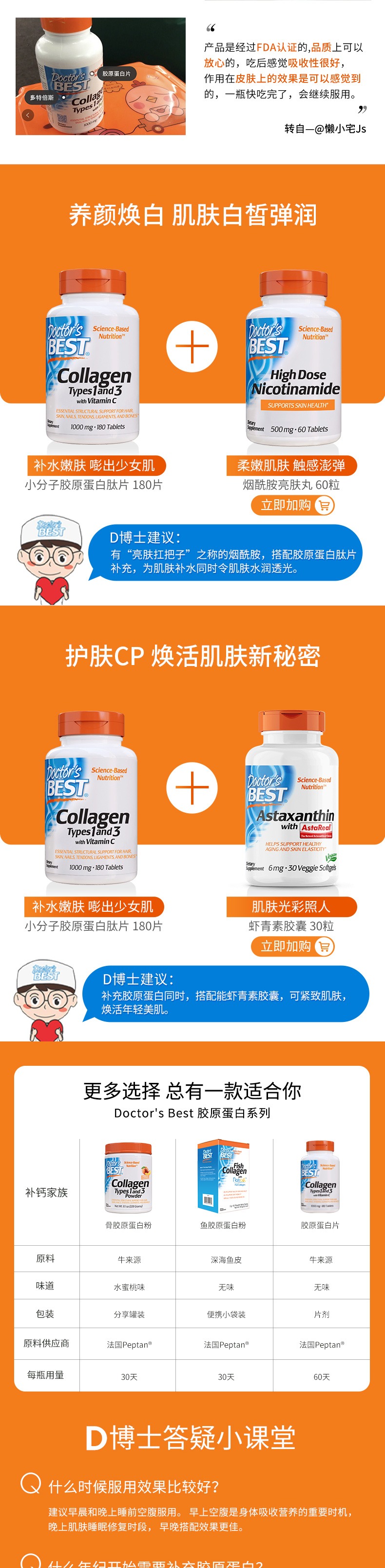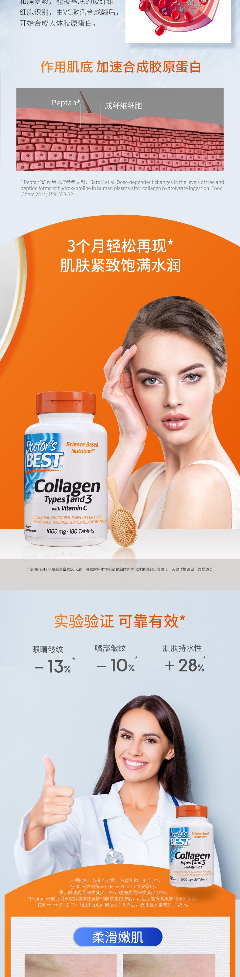 多贝斯特的胶原蛋白,包含维C和MSM(二甲基砜)补充,可以促进胶原蛋白在体内合成,效果更好。