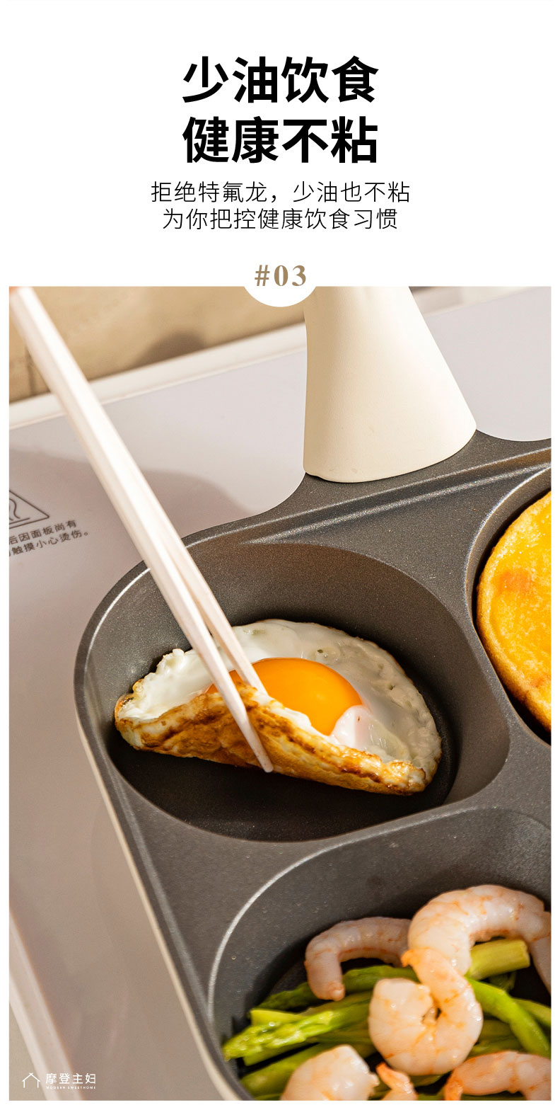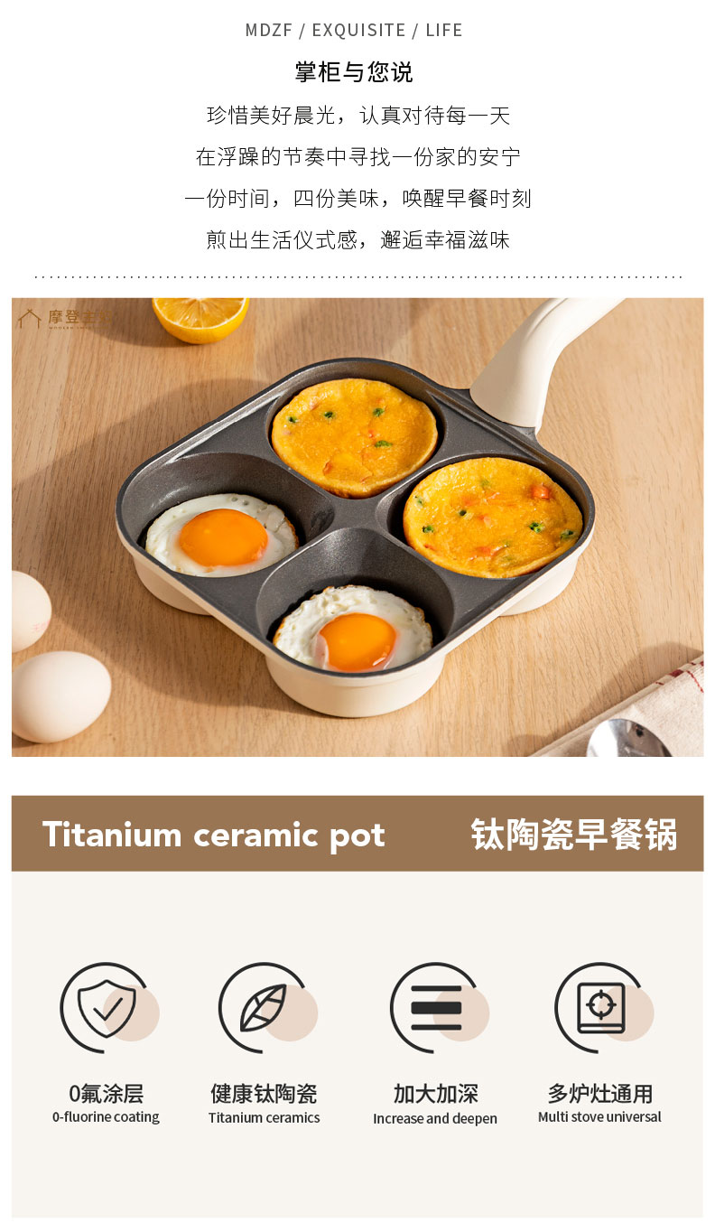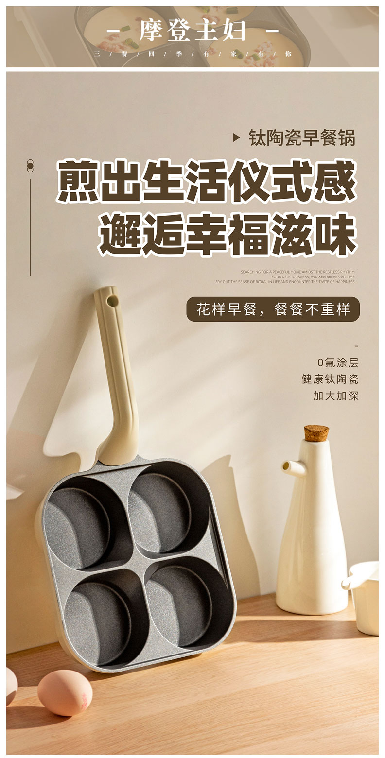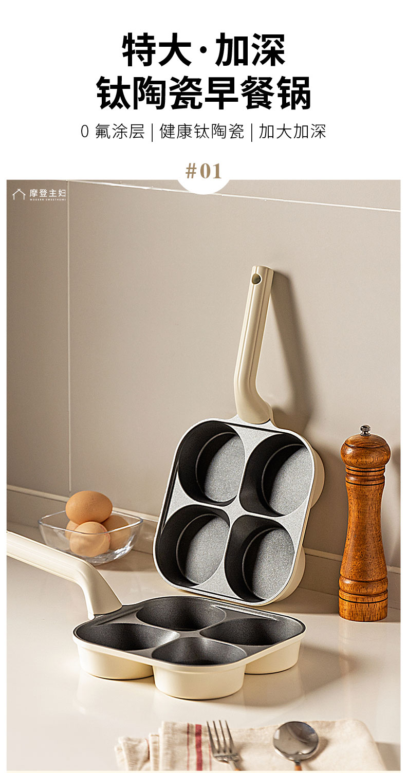 摩登主妇钛陶瓷早餐锅煎饼鸡蛋汉堡四孔不粘锅家用煎蛋神器肉蛋堡
