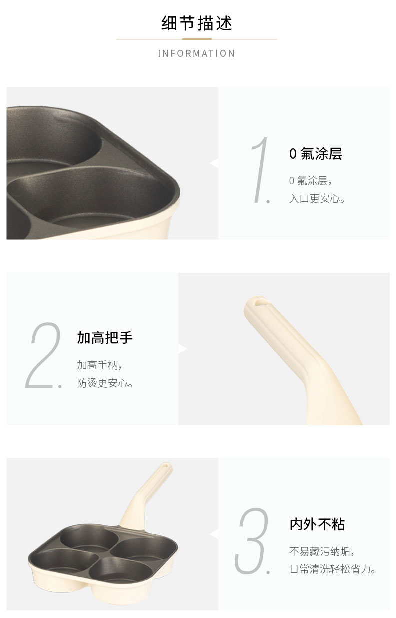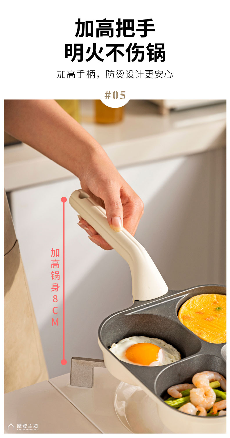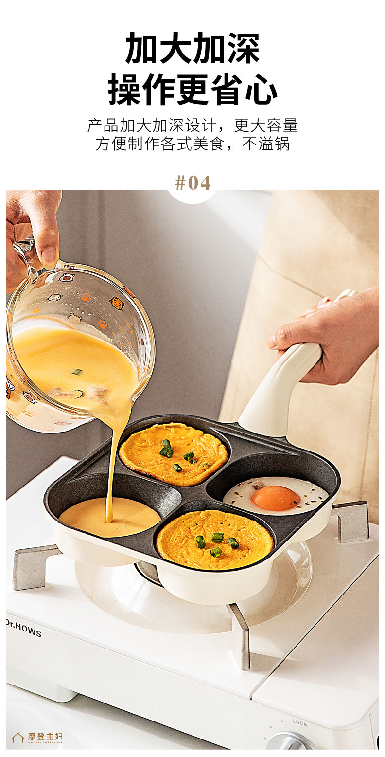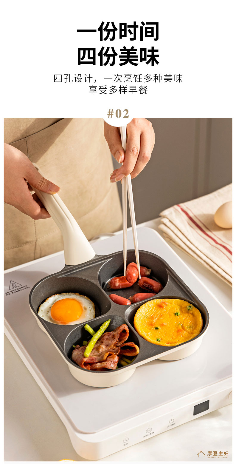 摩登主妇钛陶瓷早餐锅煎饼鸡蛋汉堡四孔不粘锅家用煎蛋神器肉蛋堡