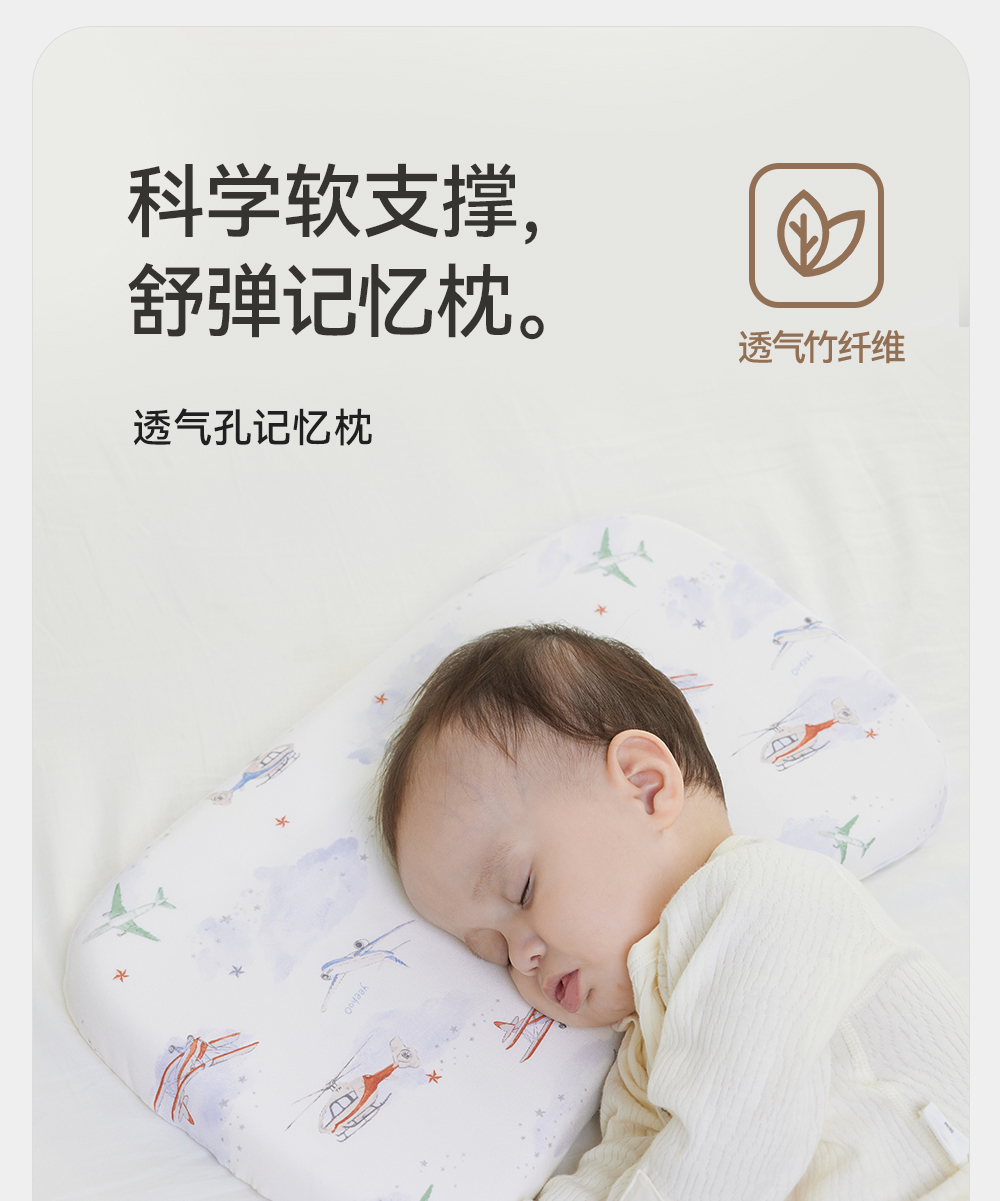 【商场同款】英氏婴儿枕头夏季透气宝宝定型枕新款竹纤维枕头