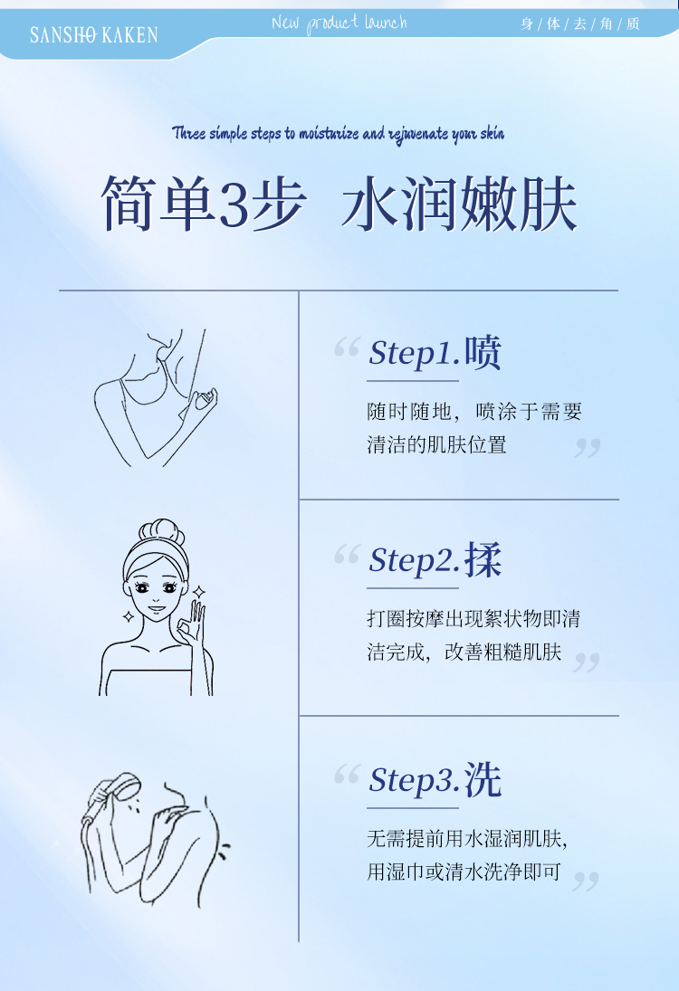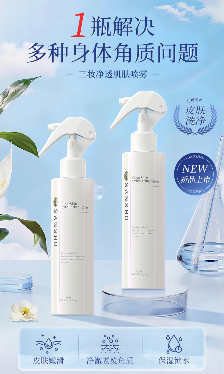 去角质 改粗糙 净透肌肤身体喷雾200ml 三妆 国内发货