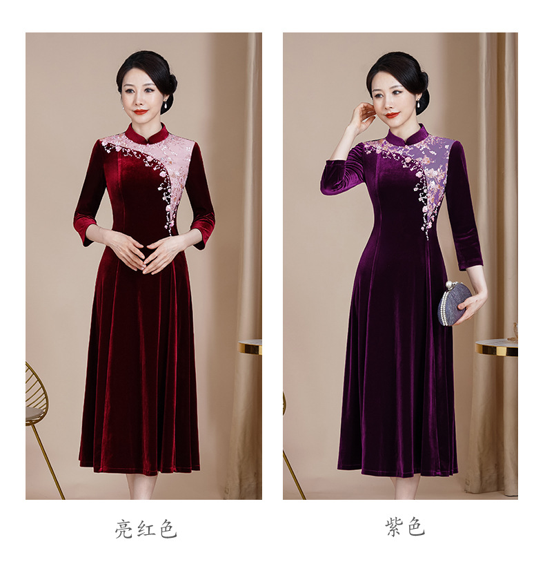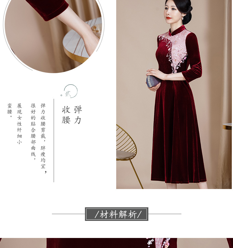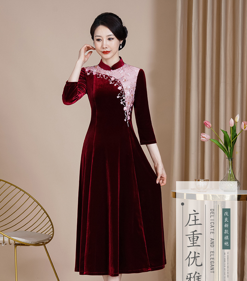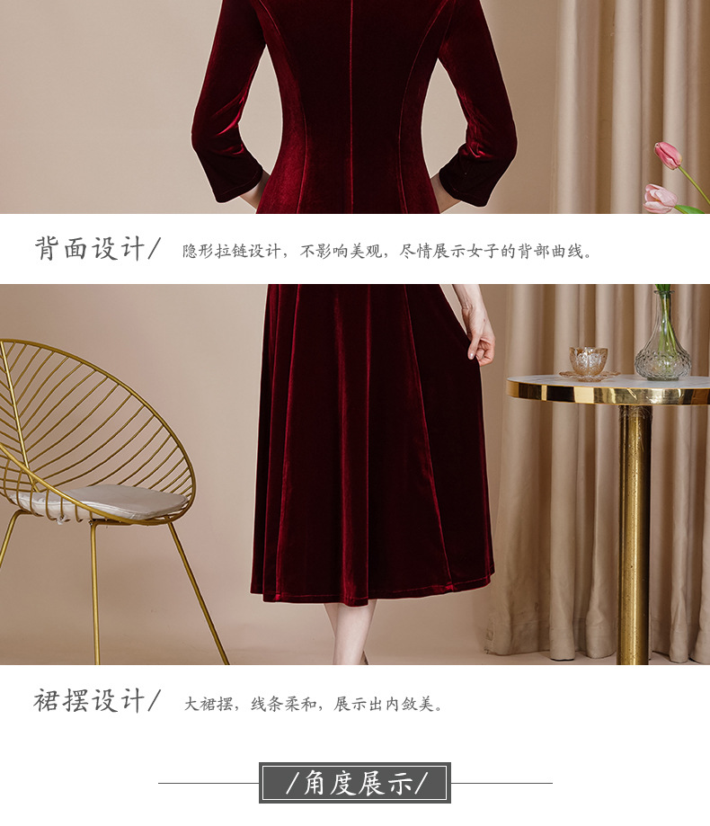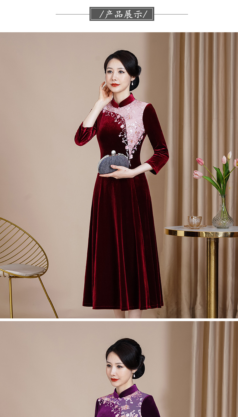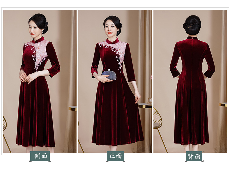 韩国绒时尚旗袍,大摆长款连衣裙HYX-24-7858