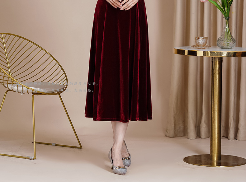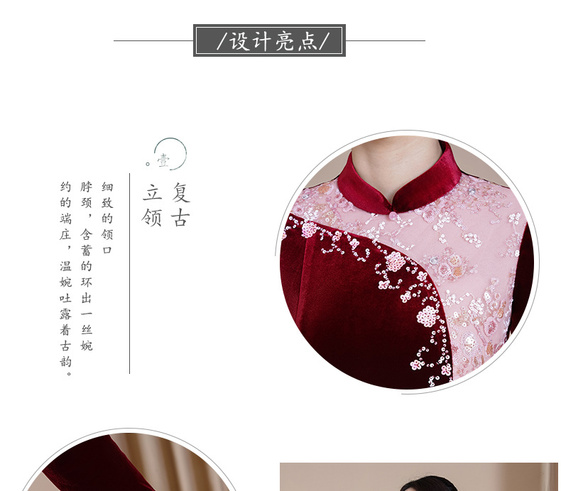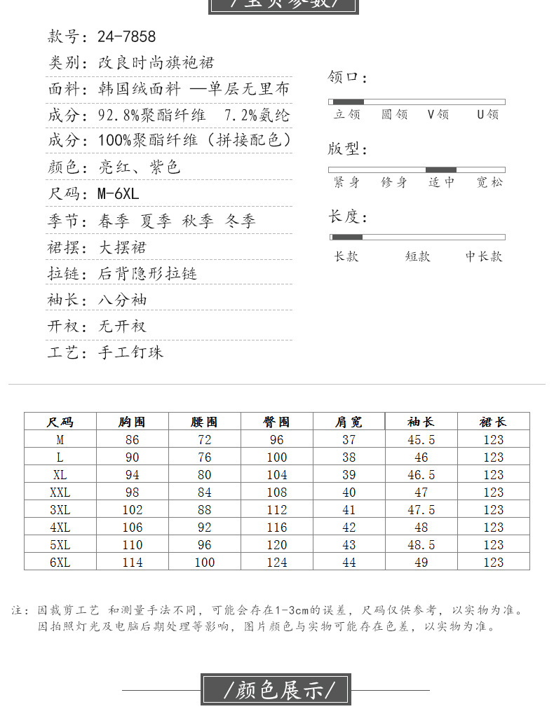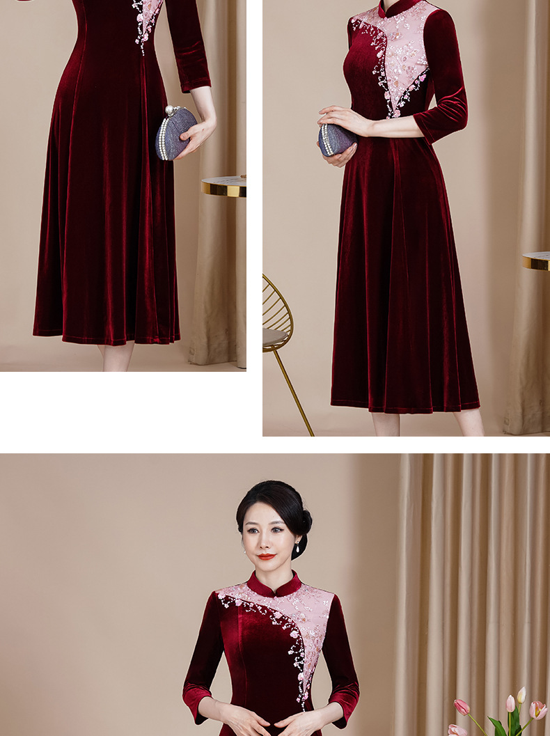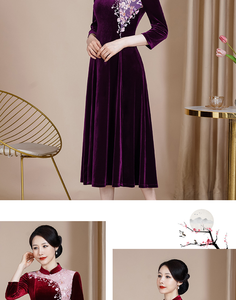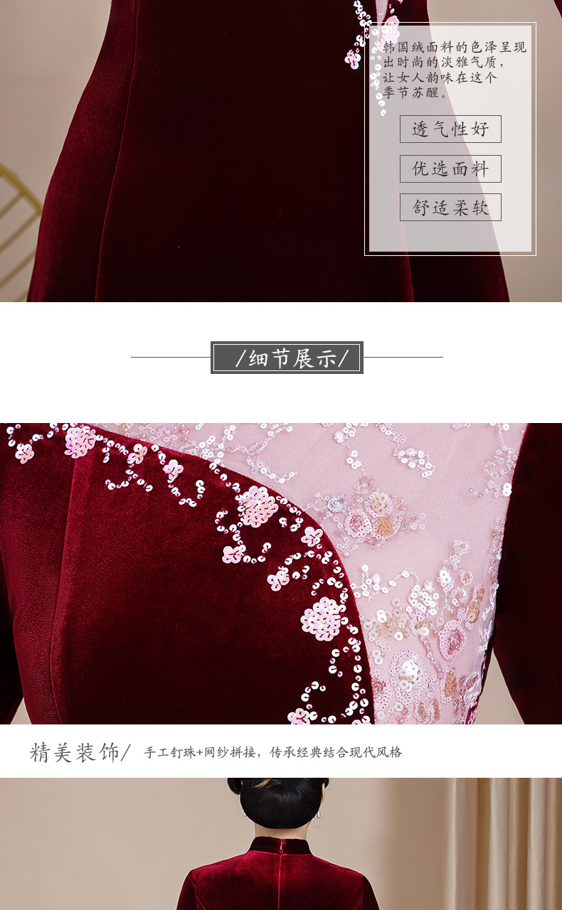 韩国绒时尚旗袍,大摆长款连衣裙HYX-24-7858