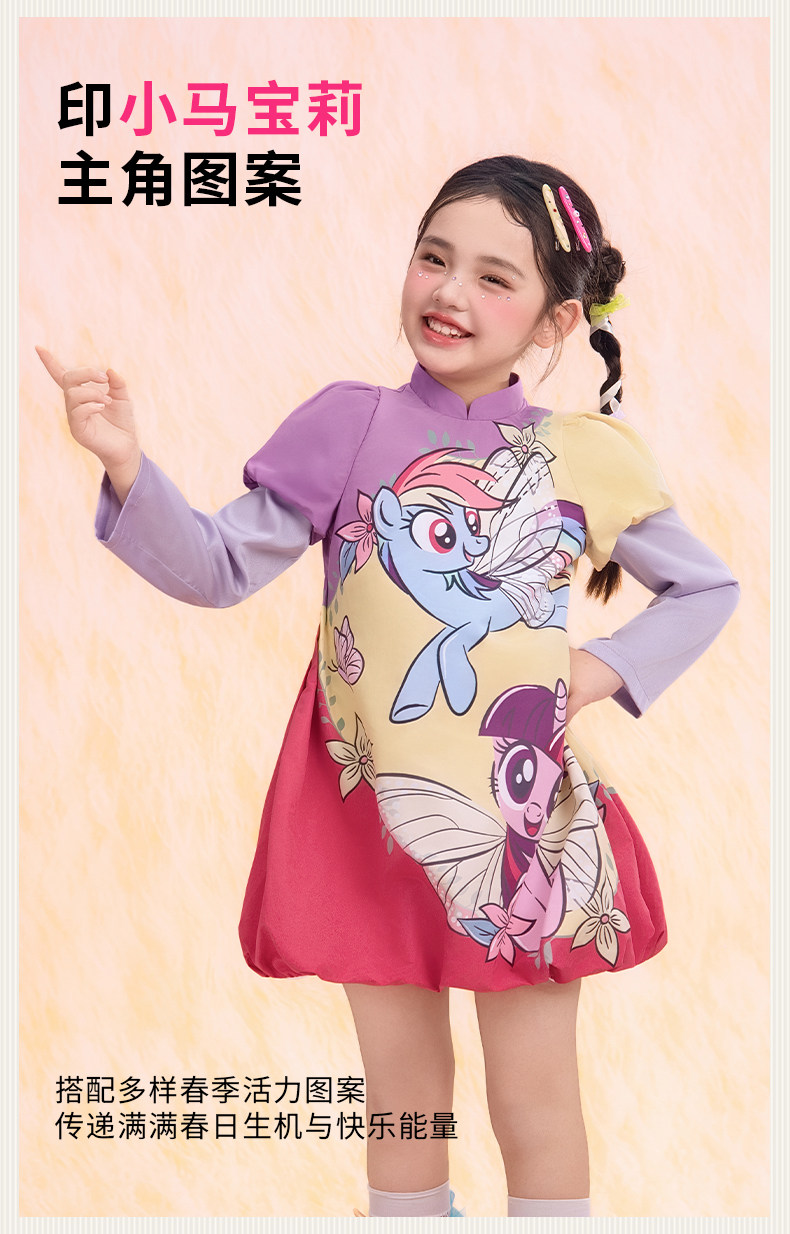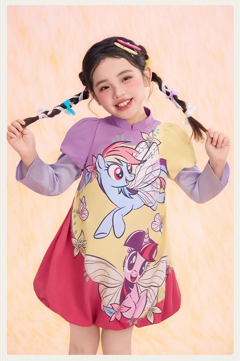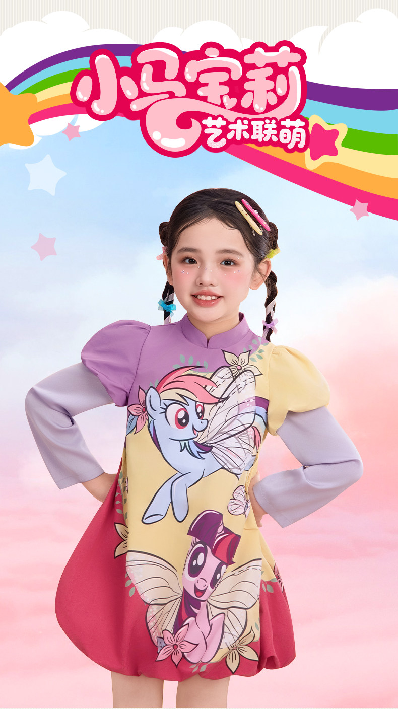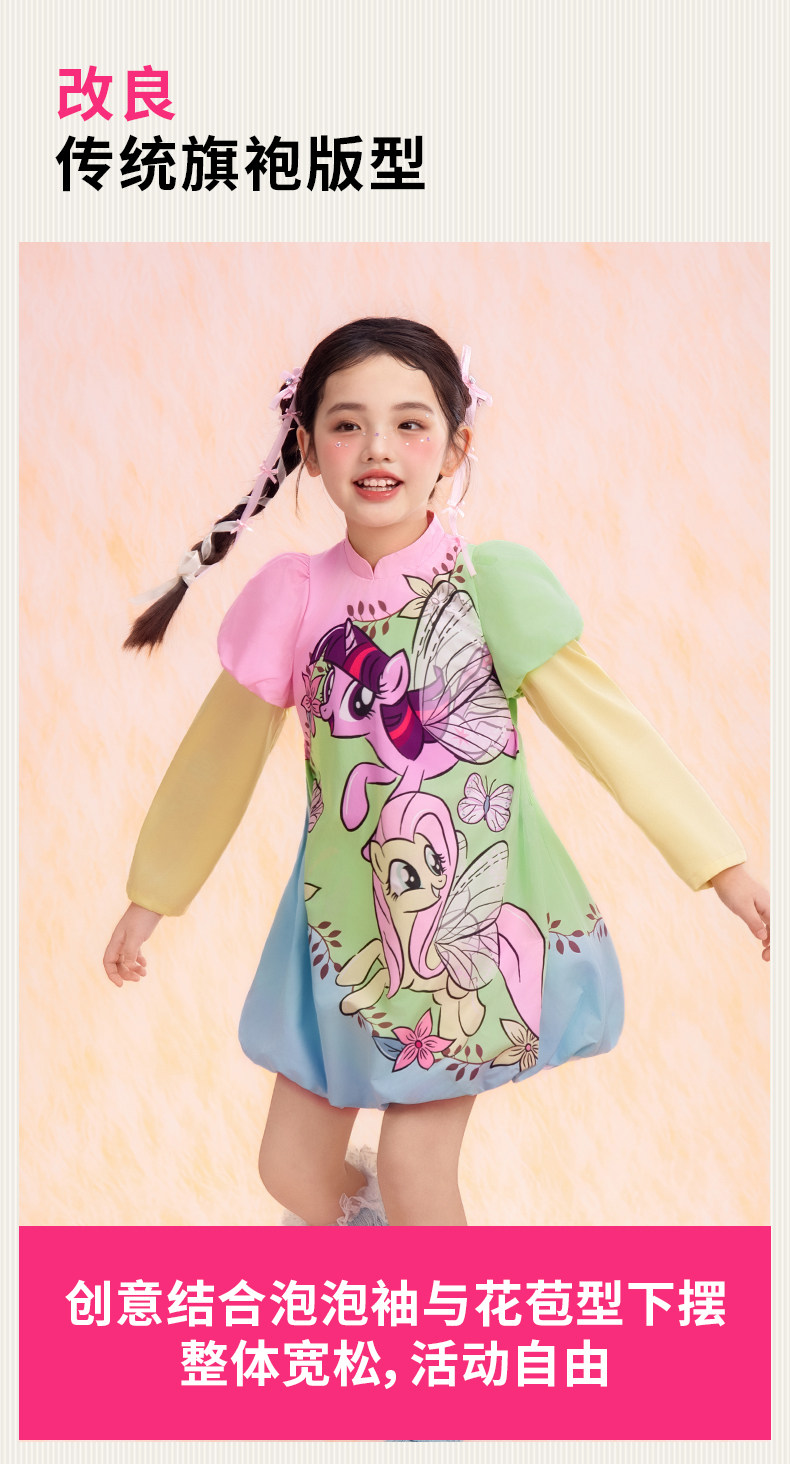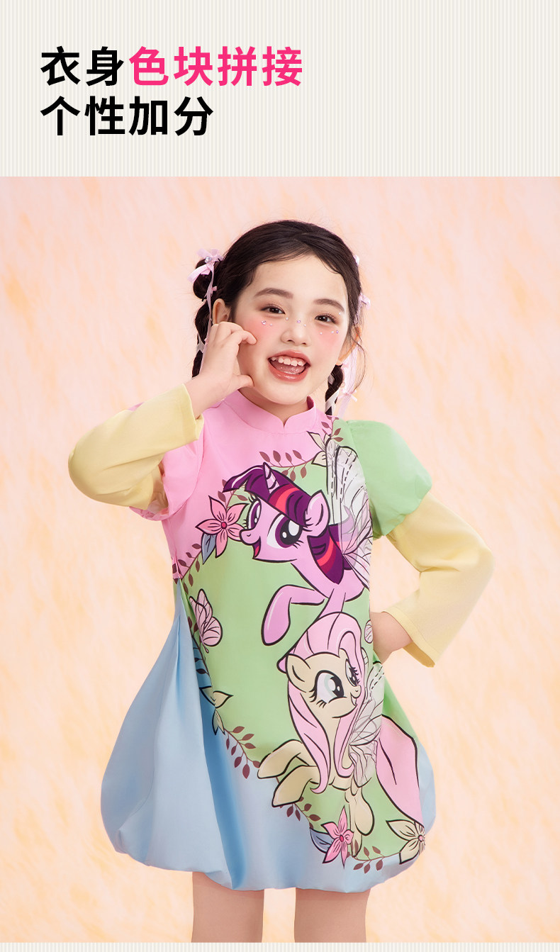 小马宝莉联名年衣童装拼色旗袍女孩春新款泡泡袖小马宝莉拼色旗袍N1261006D04
