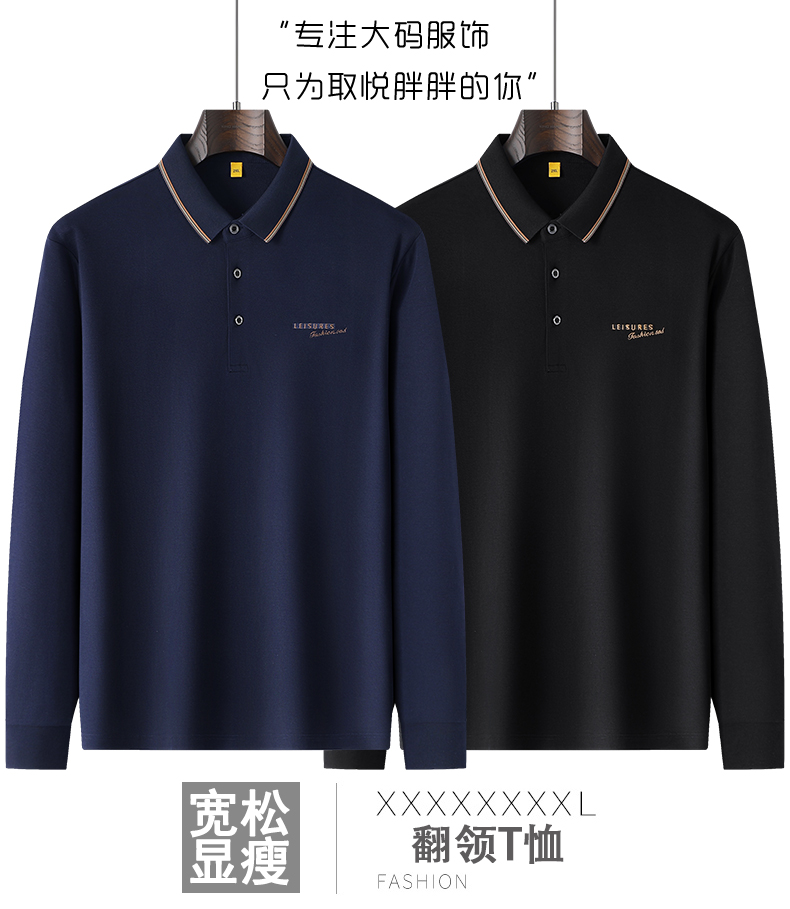 【加绒】【新款DG】大依优型大码加绒长袖Polo衫翻领男装加肥加大体恤大号上衣胖子