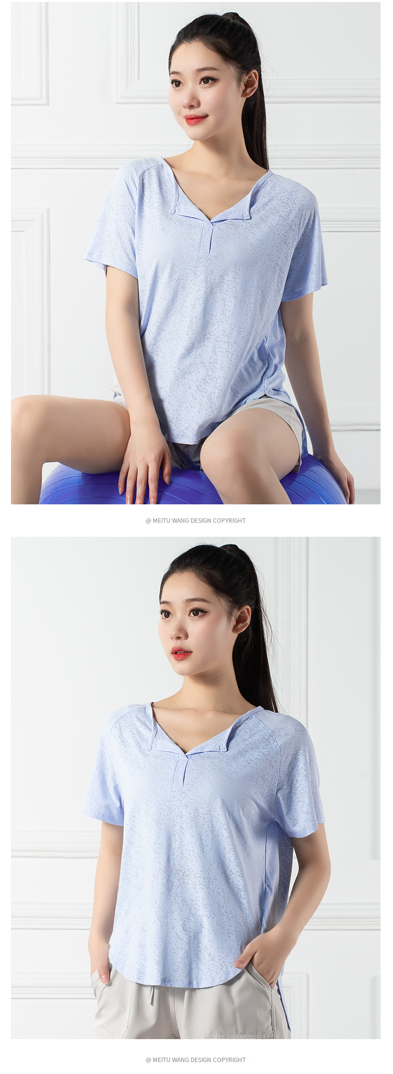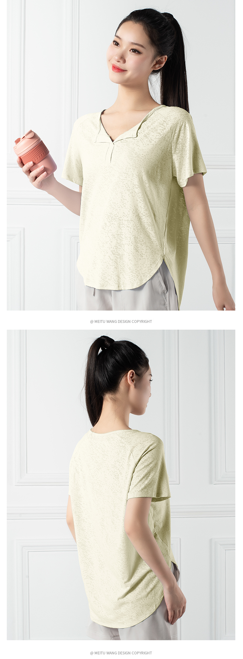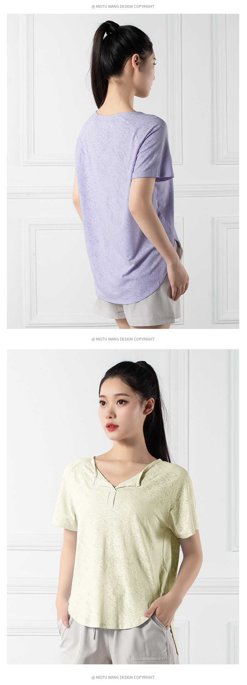 跃牌【禅语梵心系列】宽松透气V领瑜伽服短袖罩衫F2147(不带胸垫)