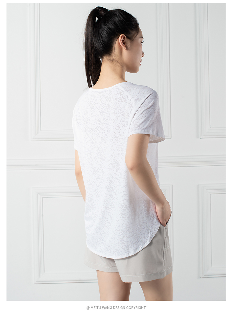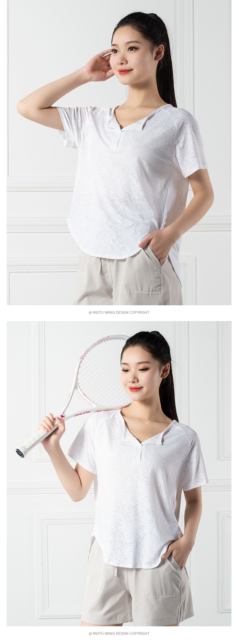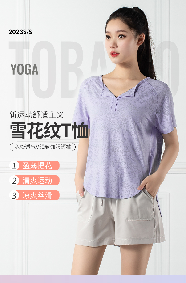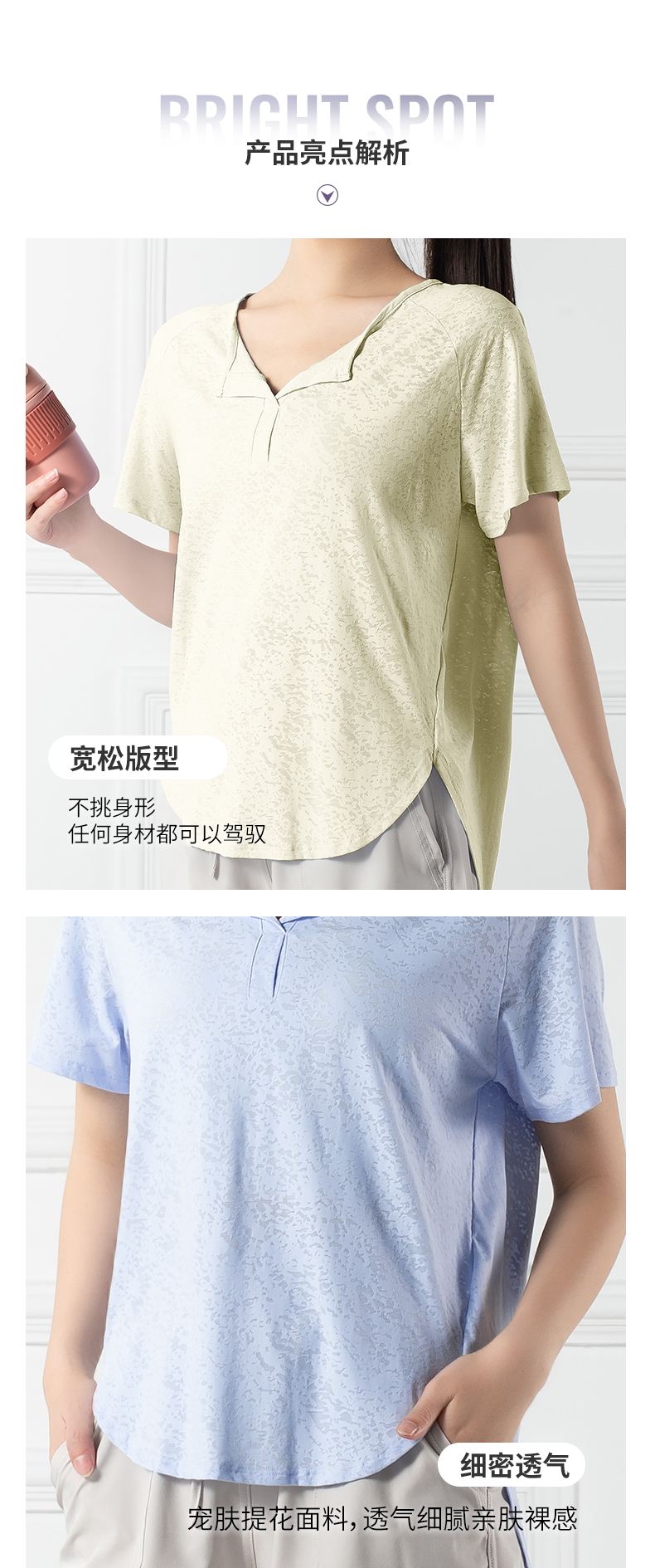 跃牌【禅语梵心系列】宽松透气V领瑜伽服短袖罩衫F2147(不带胸垫)
