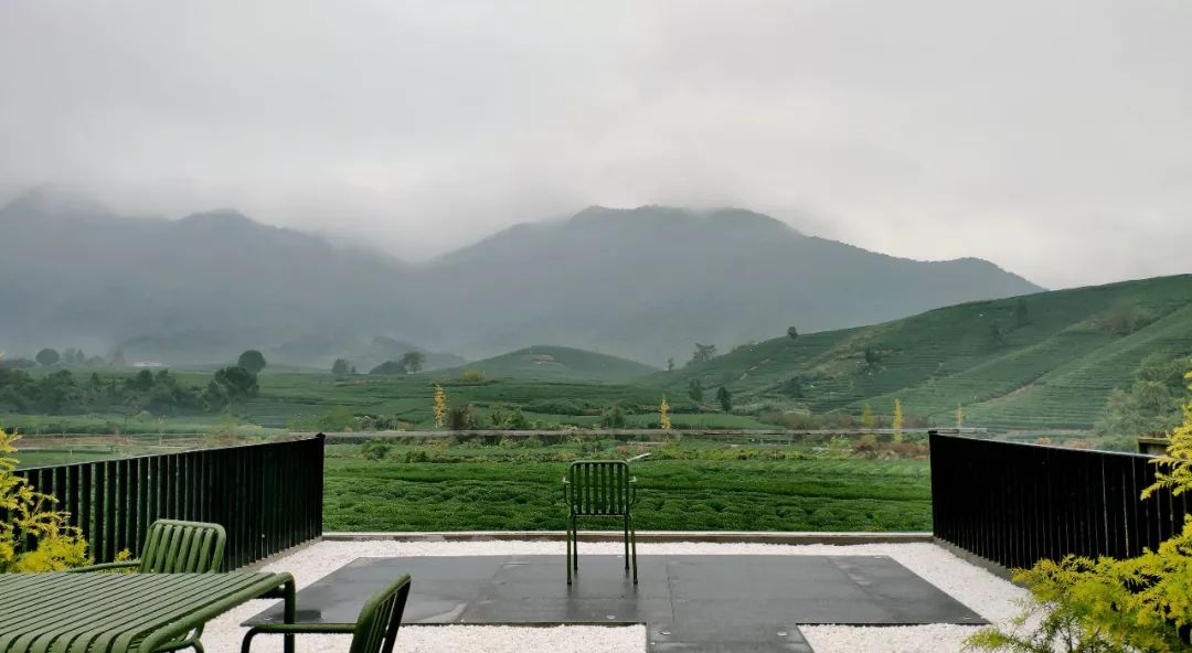 以茶为主题重逢楼,6间客房也分别取自茶名:贡眉、龙井、君山、普洱、祁门、古黟,窗外就是青翠的茶园,清冽的茶香仿佛蔓延到了室内。