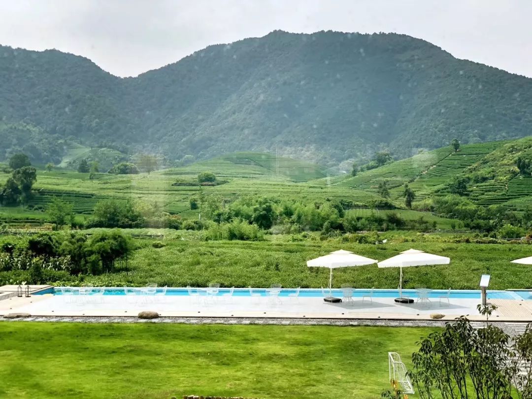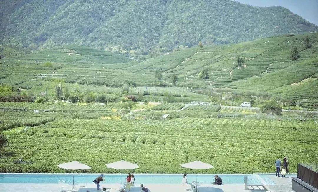 茶园边的无边泳池,蓝色和绿色组成一幅隽永的清新画面,是吸引所有镜头的所在,而池边小坐,视线绵延所及,整个龙坞的绿色都装进眼里了。