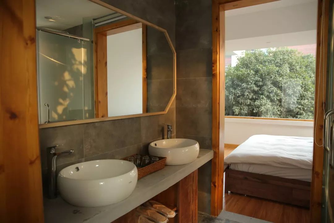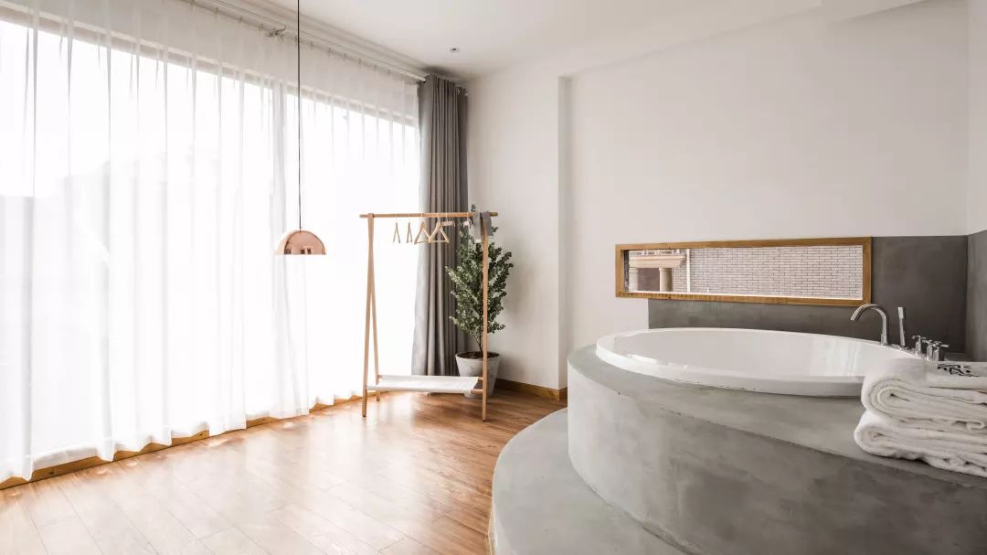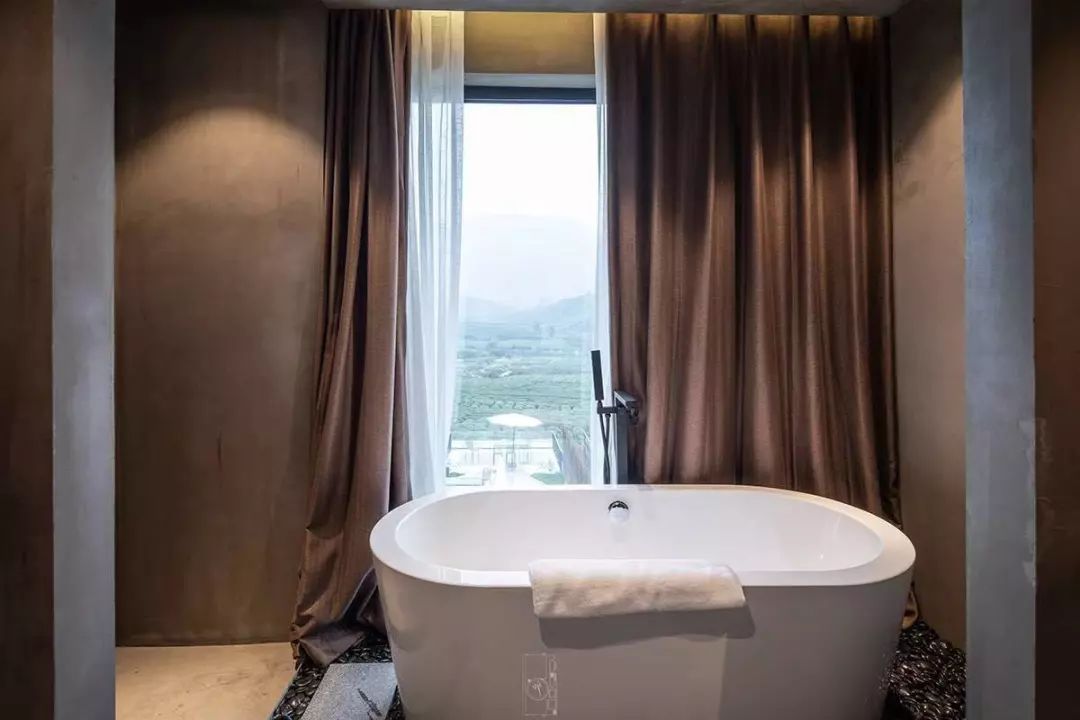 还有的在落地窗前特地放置了超大浴缸,隔着玻璃眺望翠绿茶园远山,是在故山看茶园的一种全新姿势。
