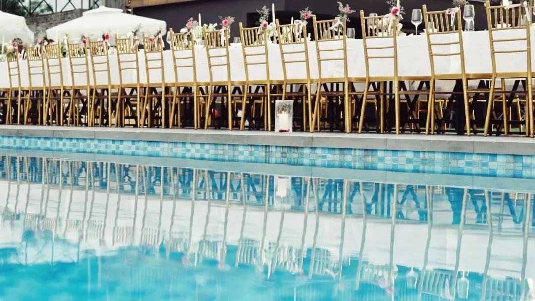 或者在泳池边来一场户外晚宴,将浪漫进行到底,哪怕仅仅在一阵风吹过的时间里,抛弃那些冗杂的琐事。