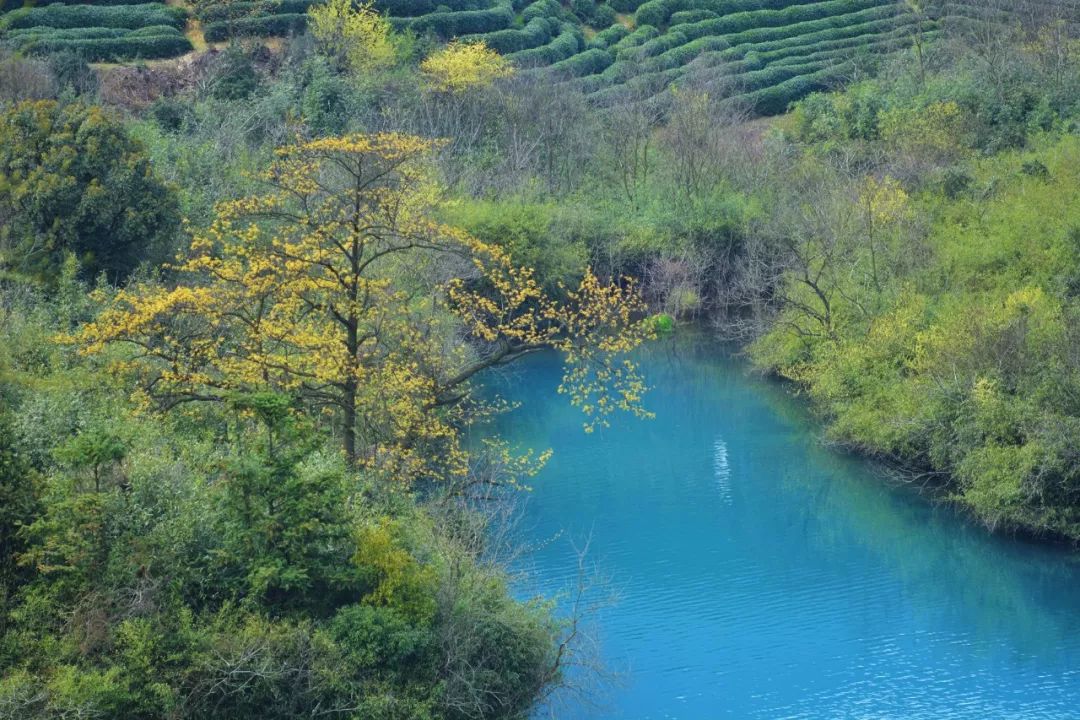 湛蓝的水库,嵌在一片茶青色中,有人说它是“杭州的小九寨沟”,大片茶田+一个树的“最佳摄影构图”也随处可见,曾经的千年茶镇,如今成了年轻人最in的打卡圣地。