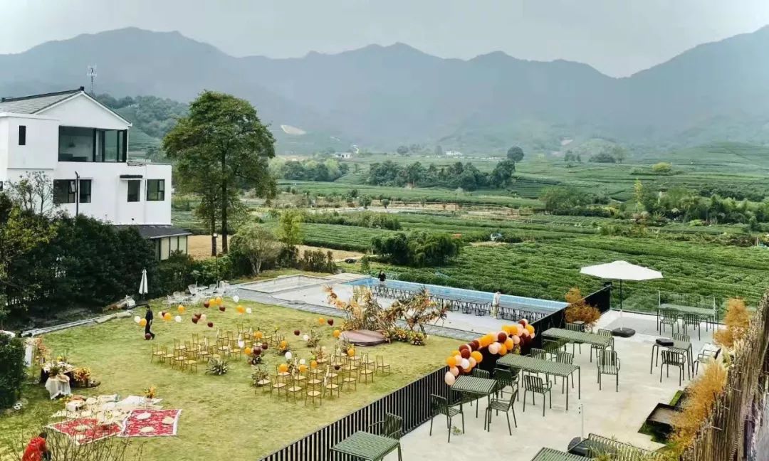 面朝3000亩茶园和群山,1200方户外空间,别说在一向“小家碧玉”的杭州民宿里堪称豪配,就连山里的民宿也不多见。
