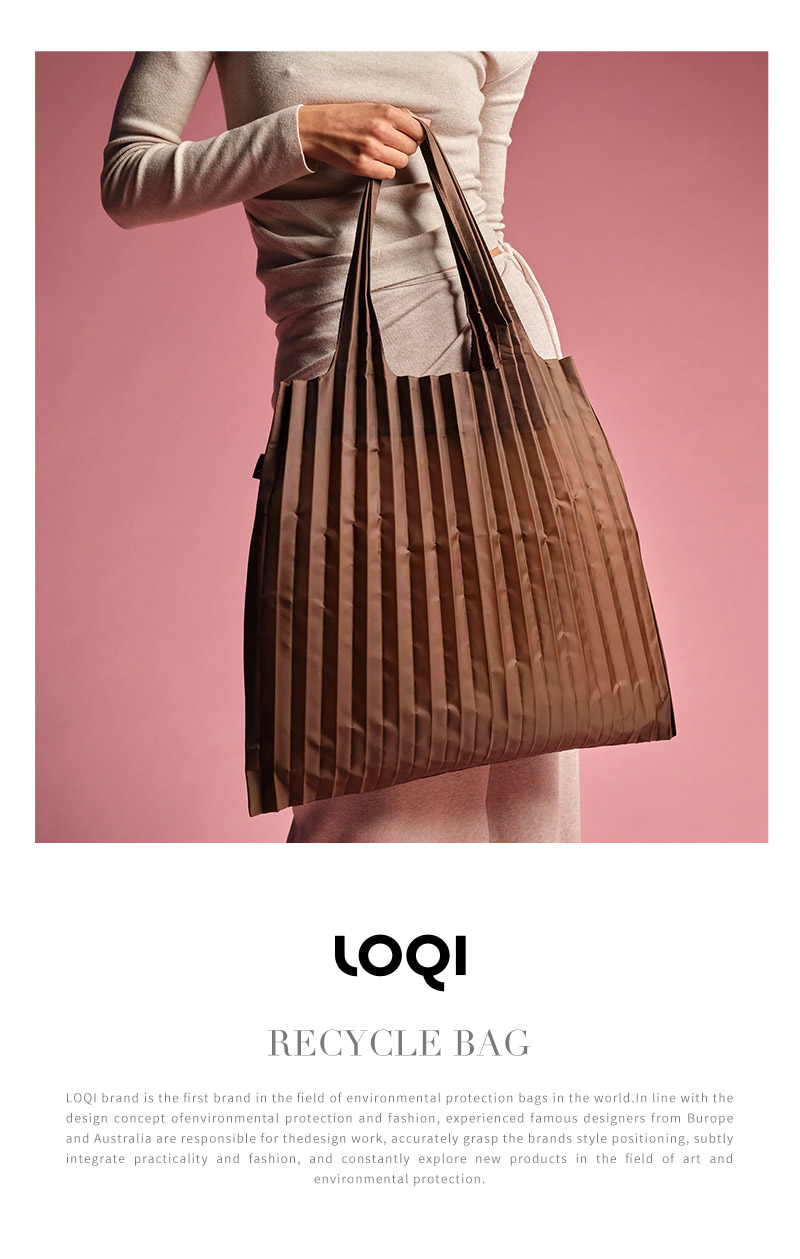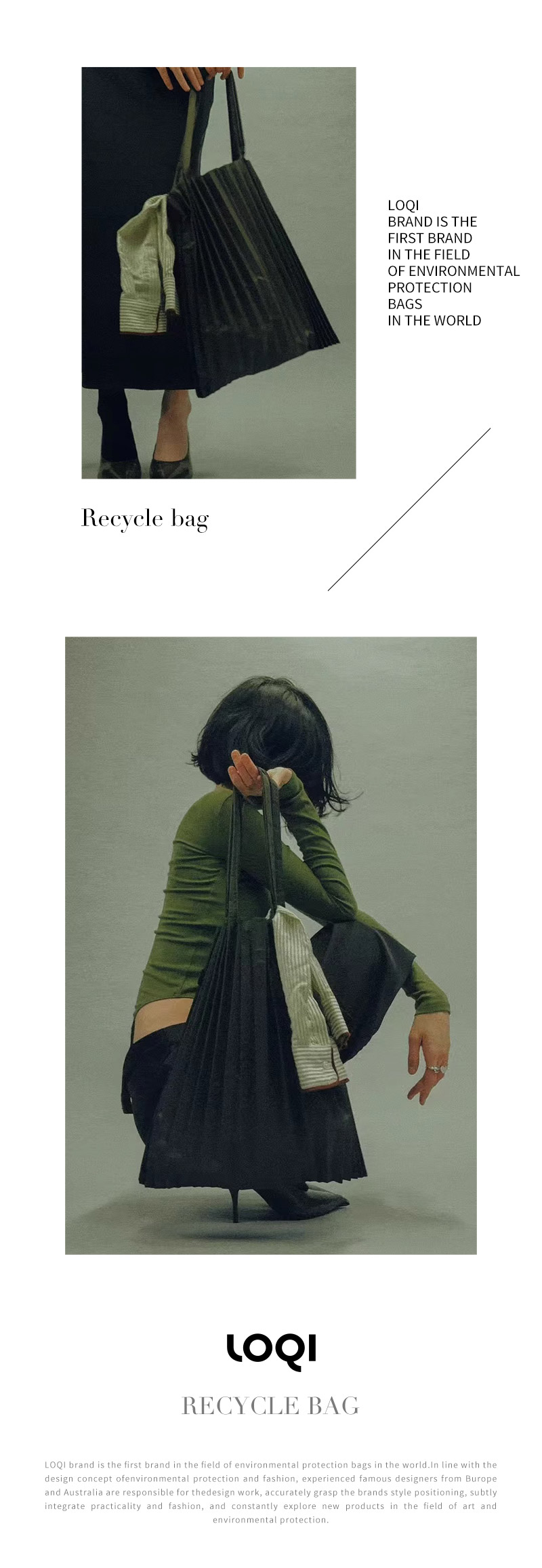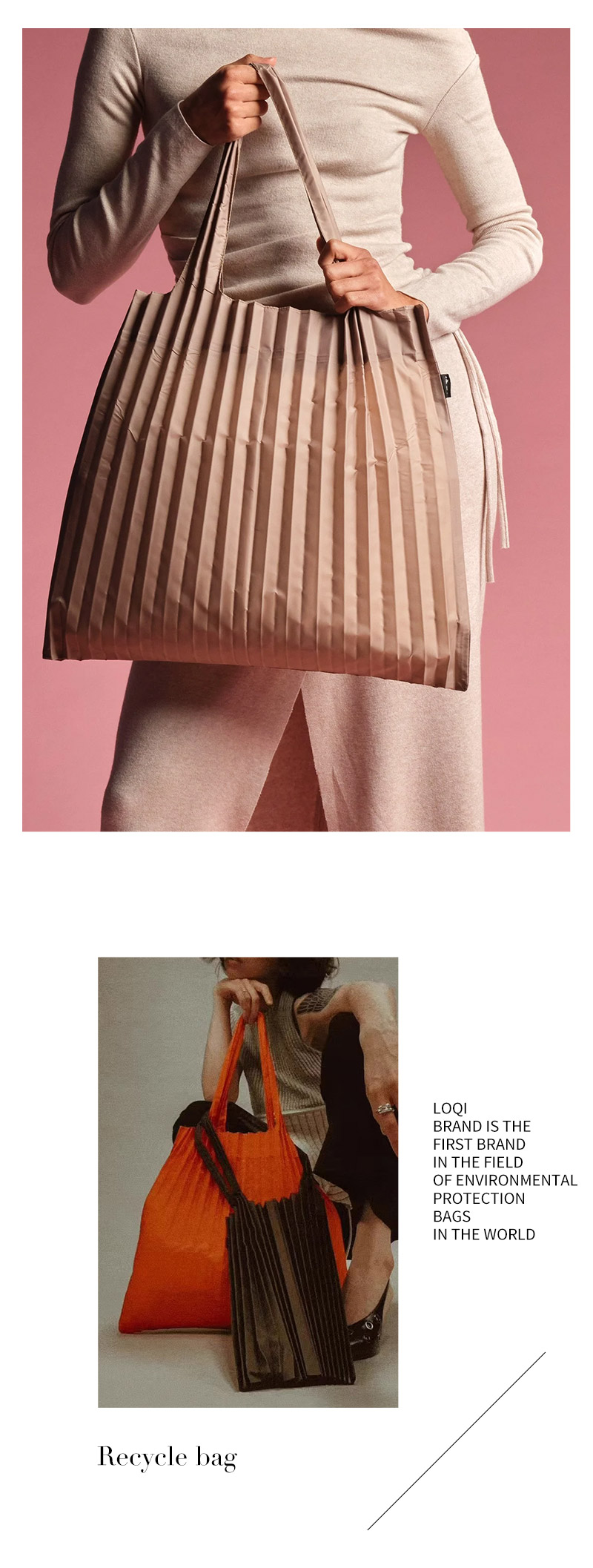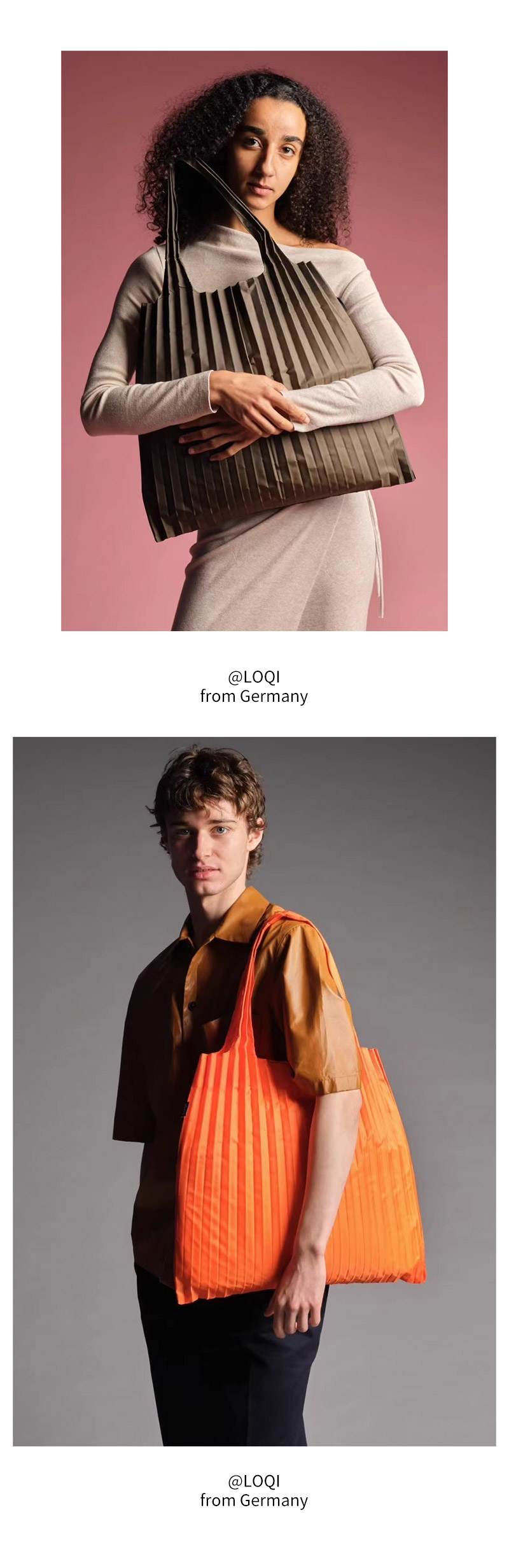 德国LOQI时尚环保万用袋/百褶包 扎染渐变单肩轻便三宅大容量褶皱ins网红潮热款流承重40斤防泼水