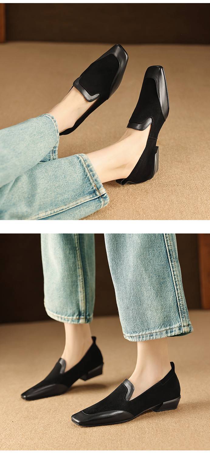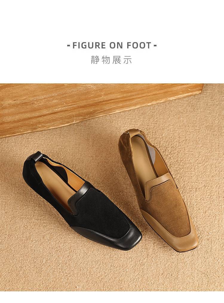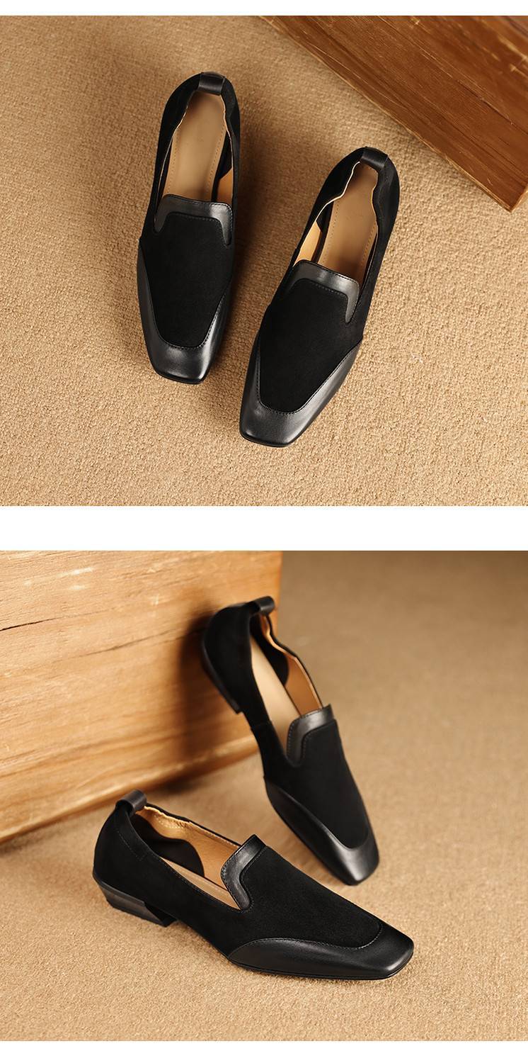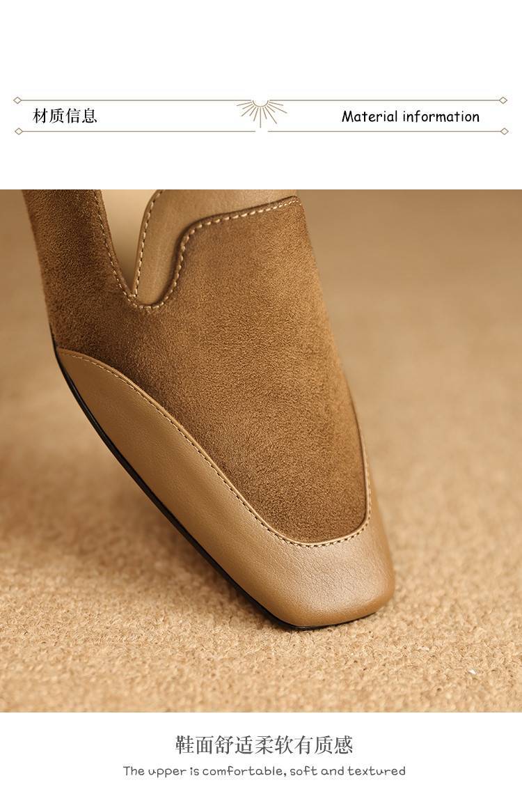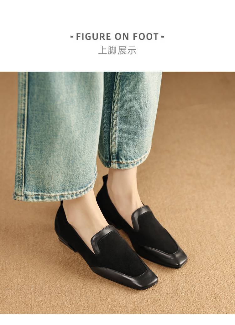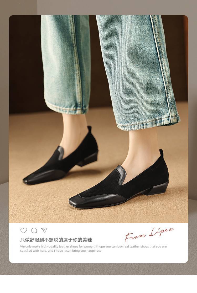 【预售5天】法式复古拼接低跟单鞋女真皮方头深口小皮鞋软底通勤工作乐福鞋LG&912-1703