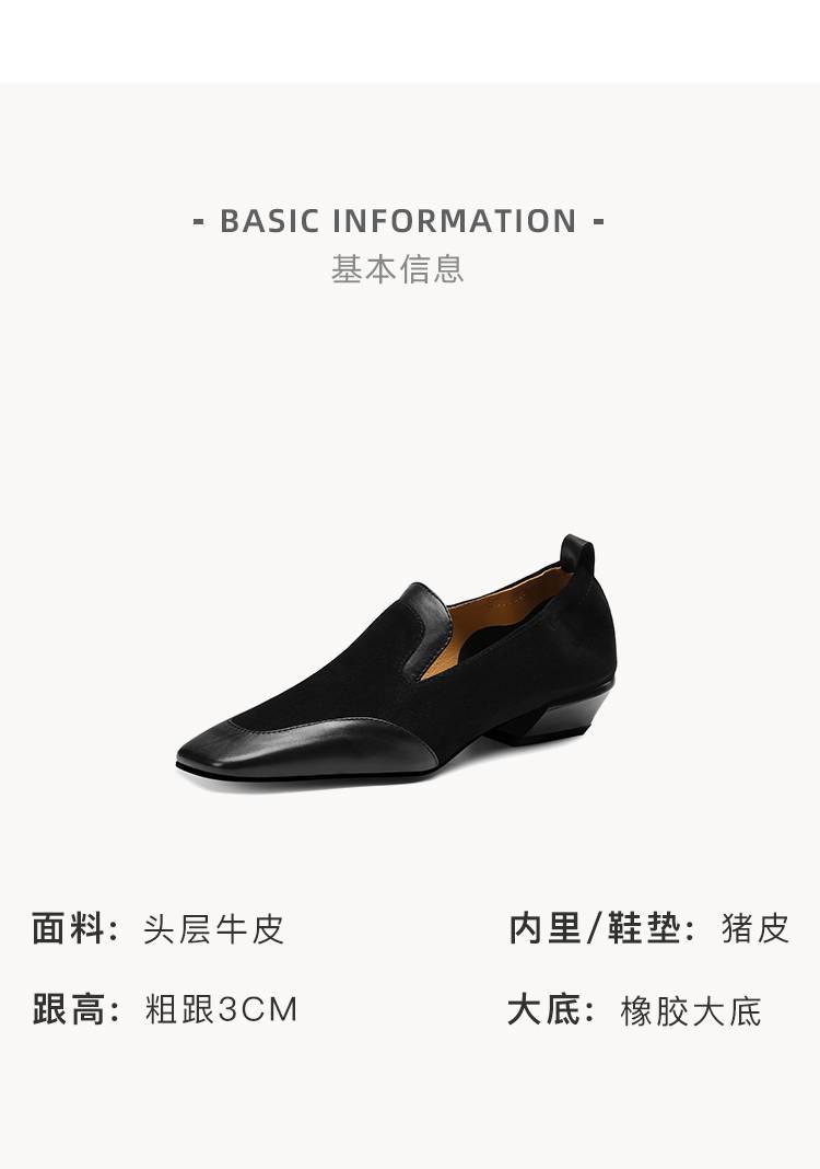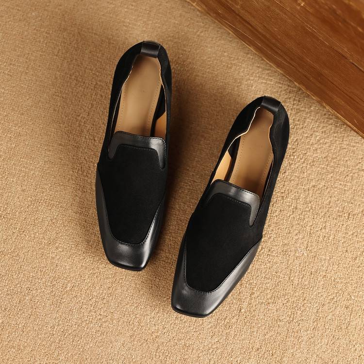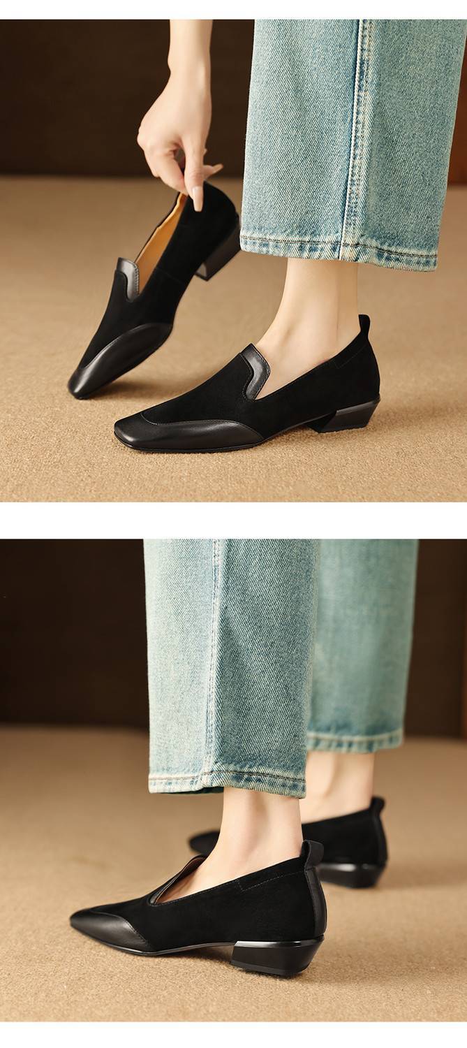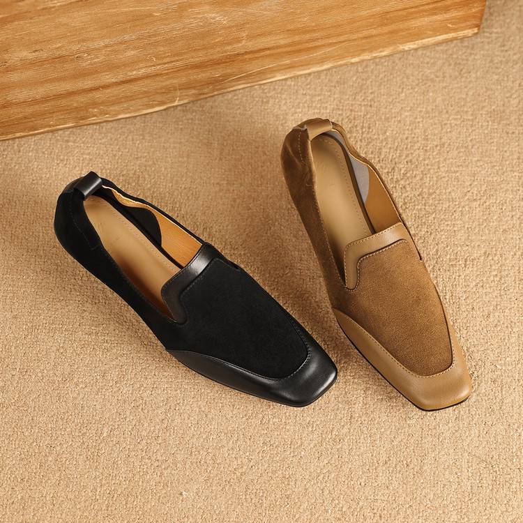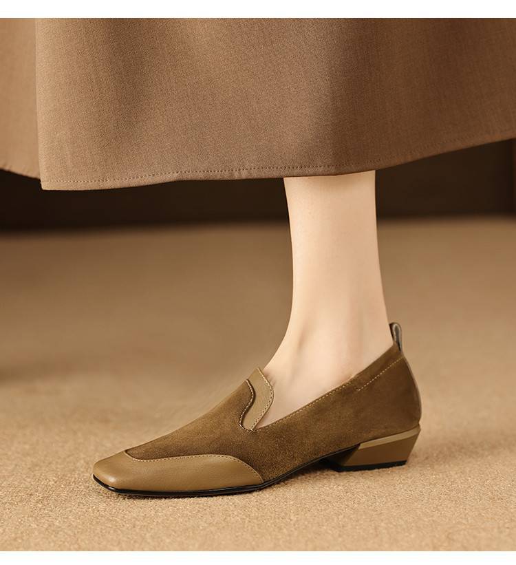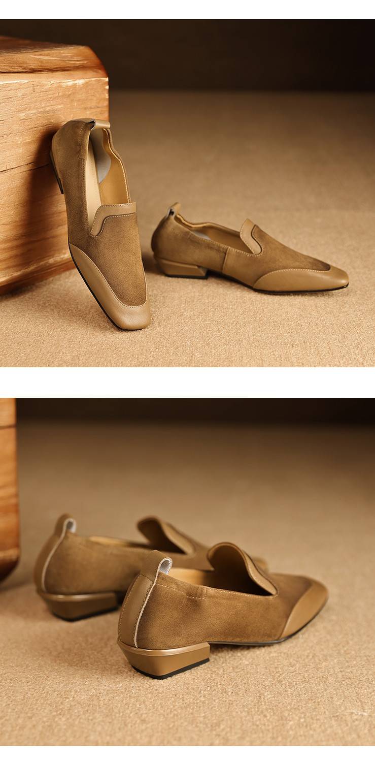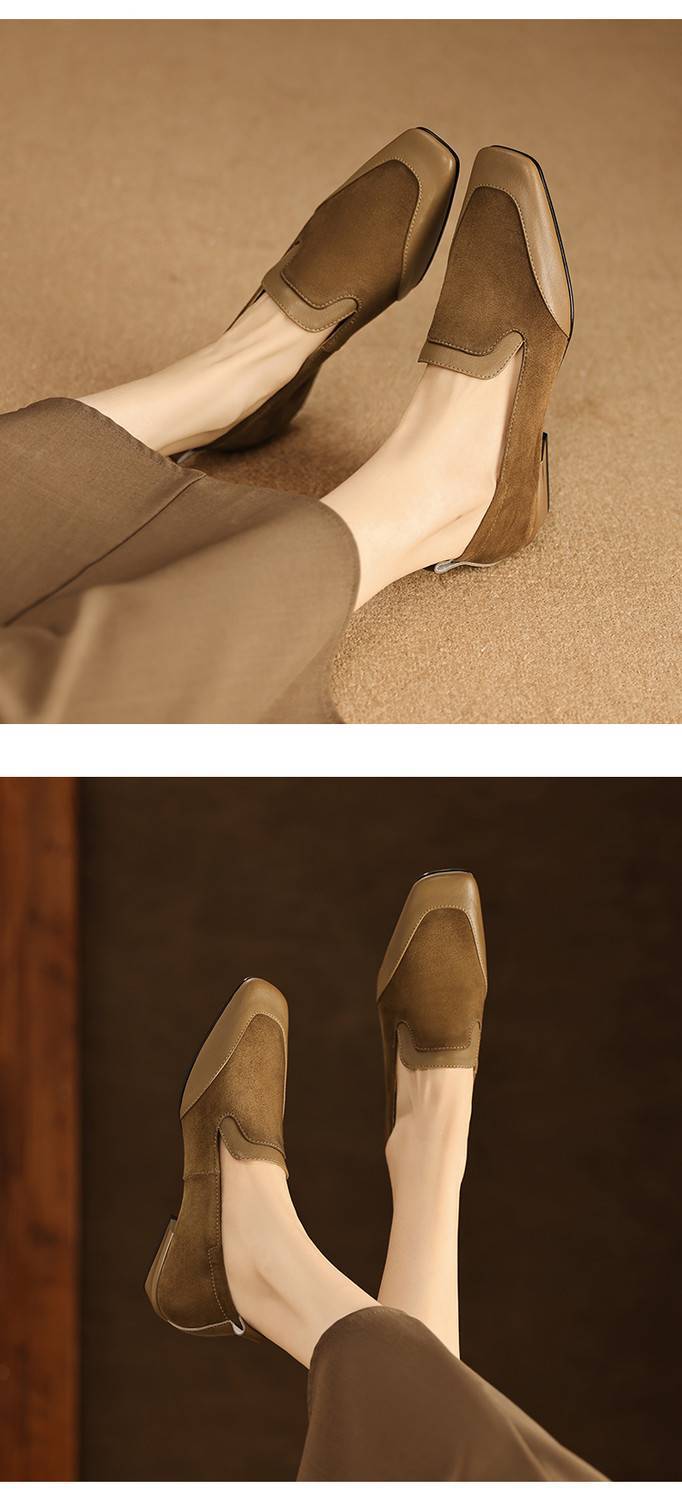 【预售5天】法式复古拼接低跟单鞋女真皮方头深口小皮鞋软底通勤工作乐福鞋LG&912-1703