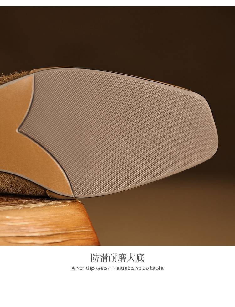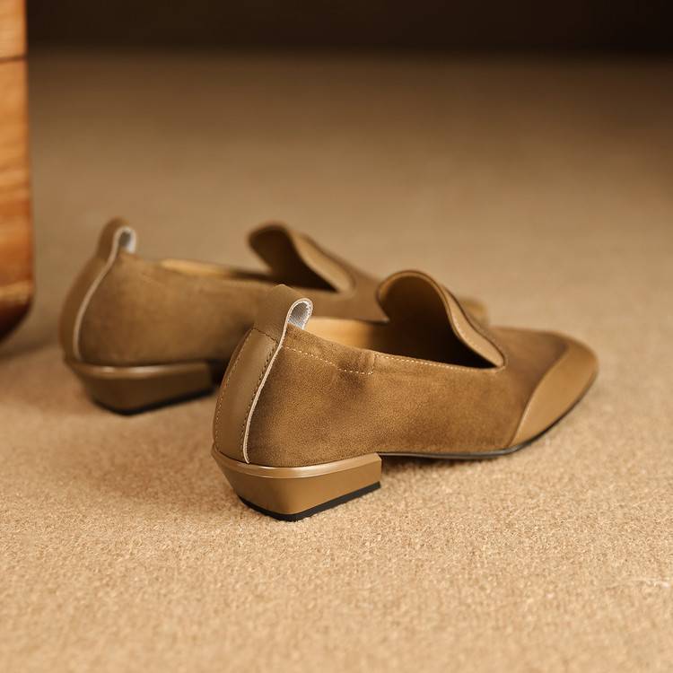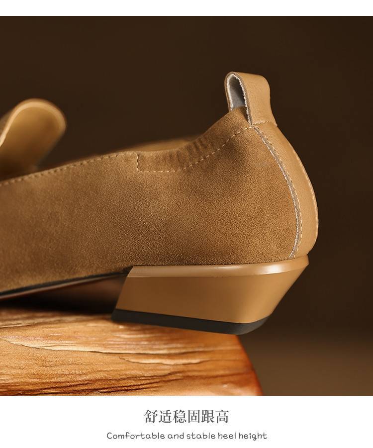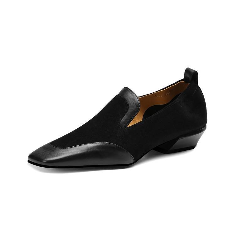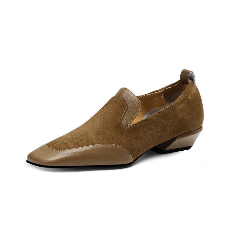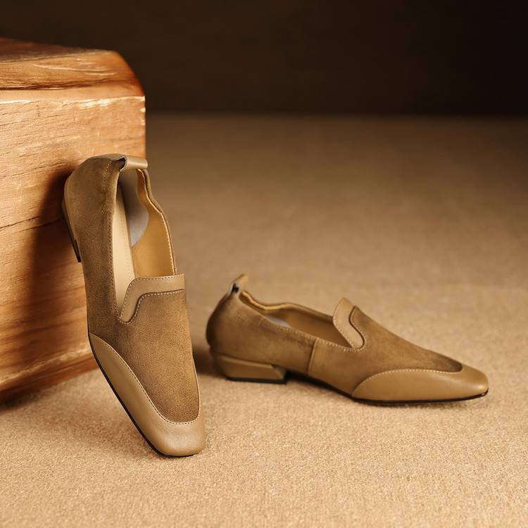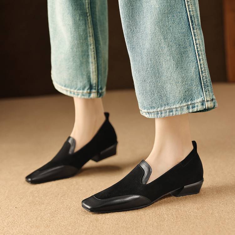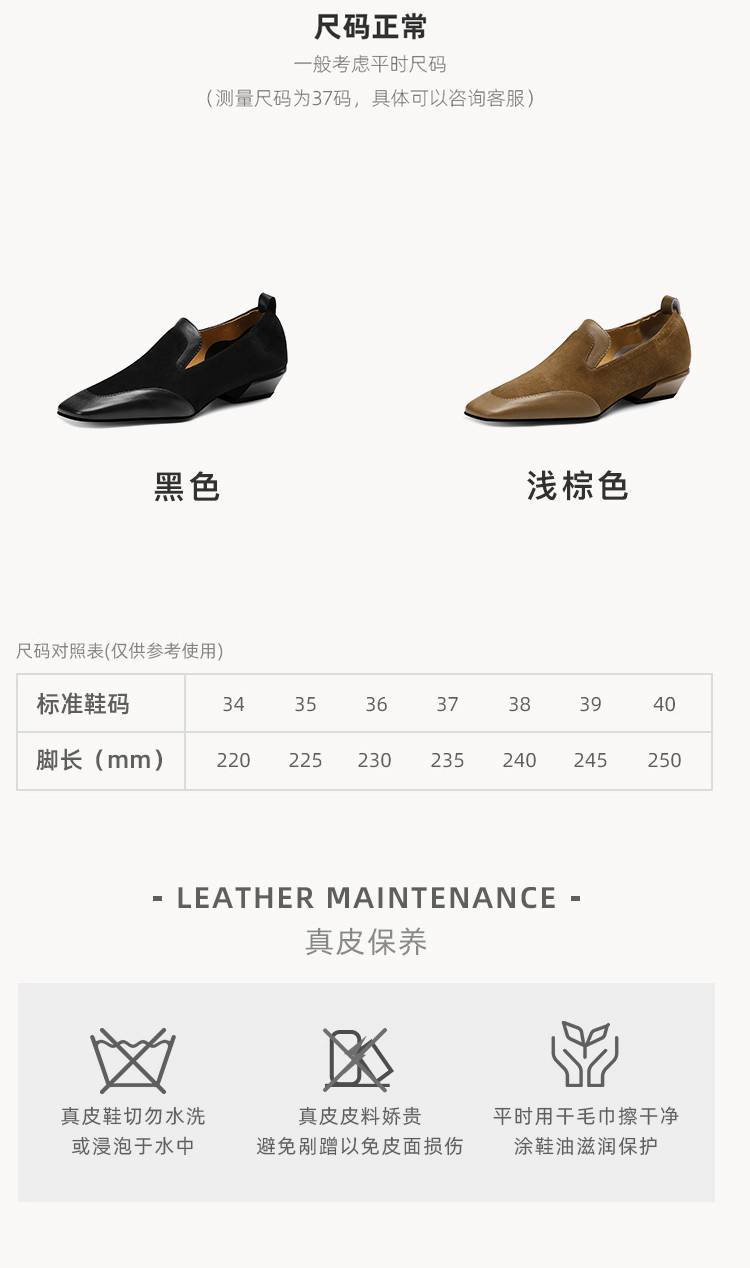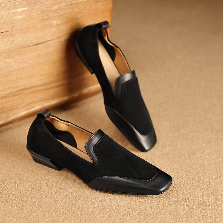 【预售5天】法式复古拼接低跟单鞋女真皮方头深口小皮鞋软底通勤工作乐福鞋LG&912-1703