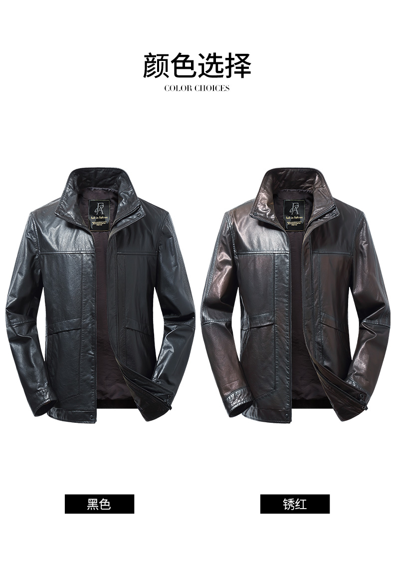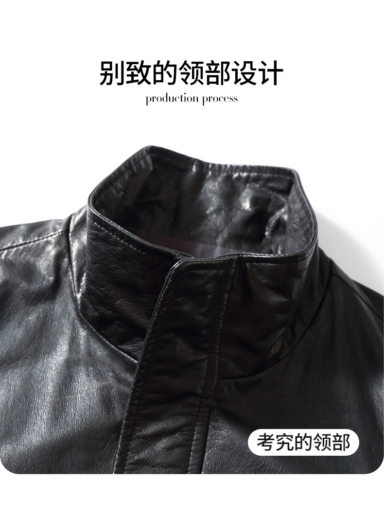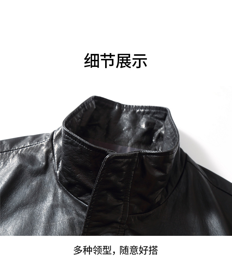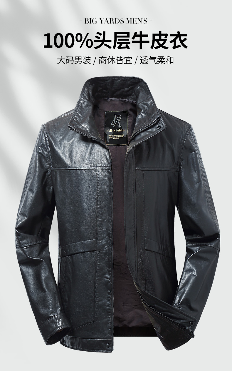【真皮DSZ】大依优型大码立领皮牛皮夹克外套休闲简约大号皮夹克真皮皮草加肥加大
