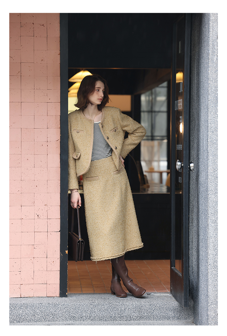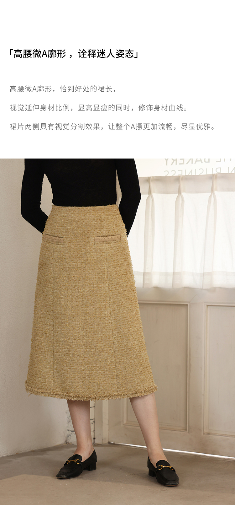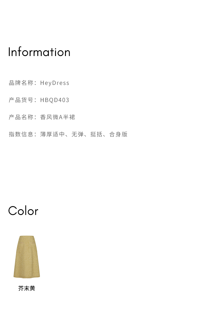 HeyDress小香风半身裙高腰显瘦a字裙法式复古气质半裙